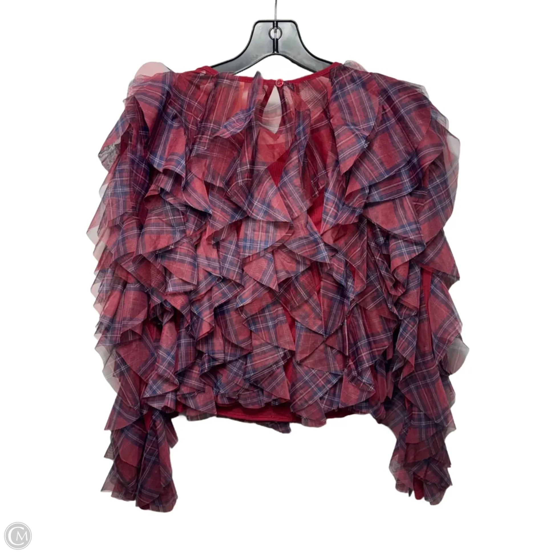 Ruffle Plaid Crew-Neck Blouse By Dolan Left Coast X Anthropologie In Red Plaid Pattern, Size: M