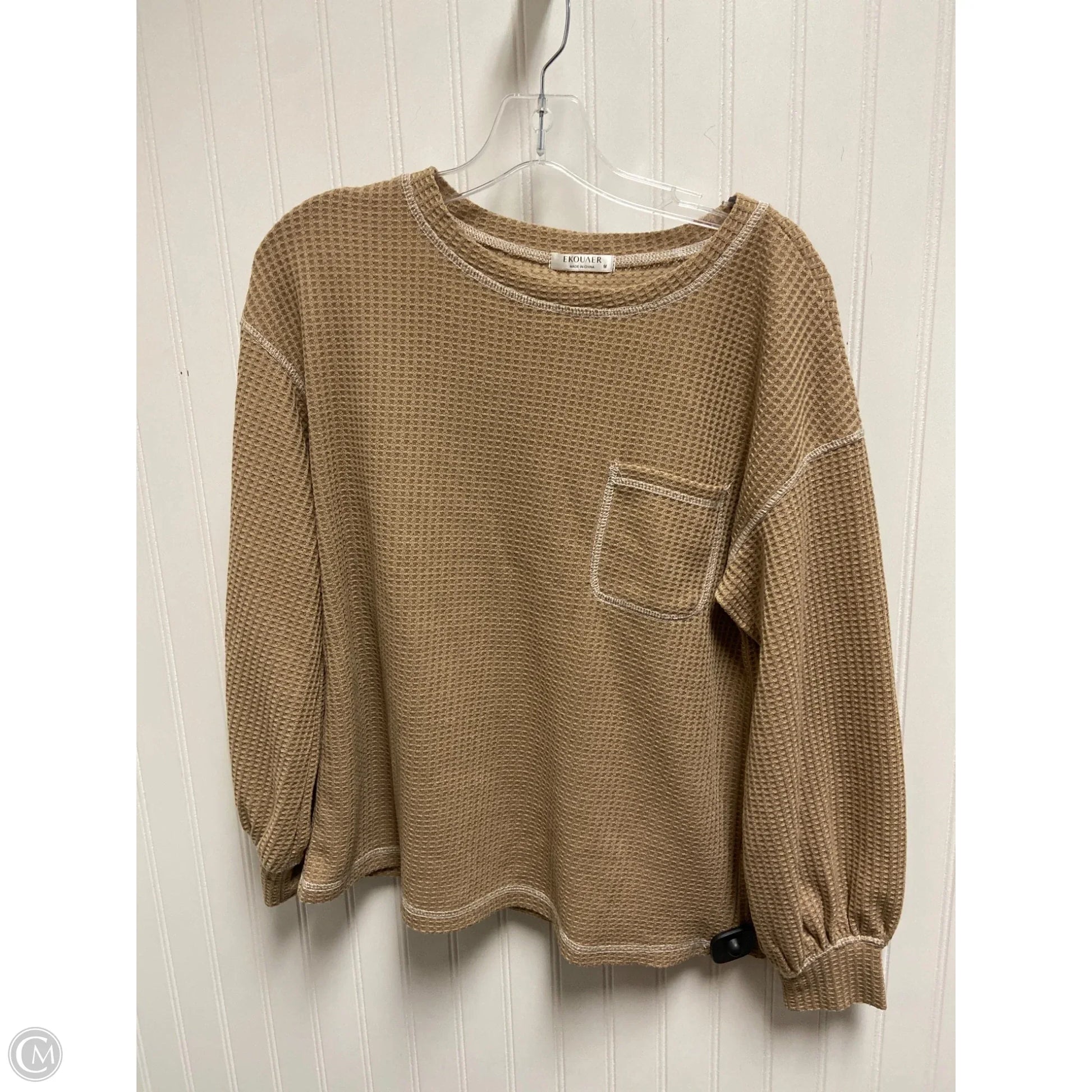 Top Long Sleeve By Ekouaer In Tan, Size: M