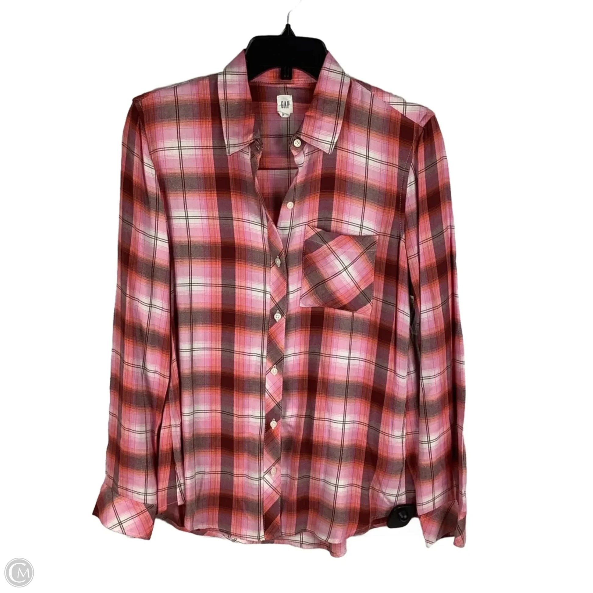 Top Long Sleeve By Gap In Plaid Pattern, Size: S