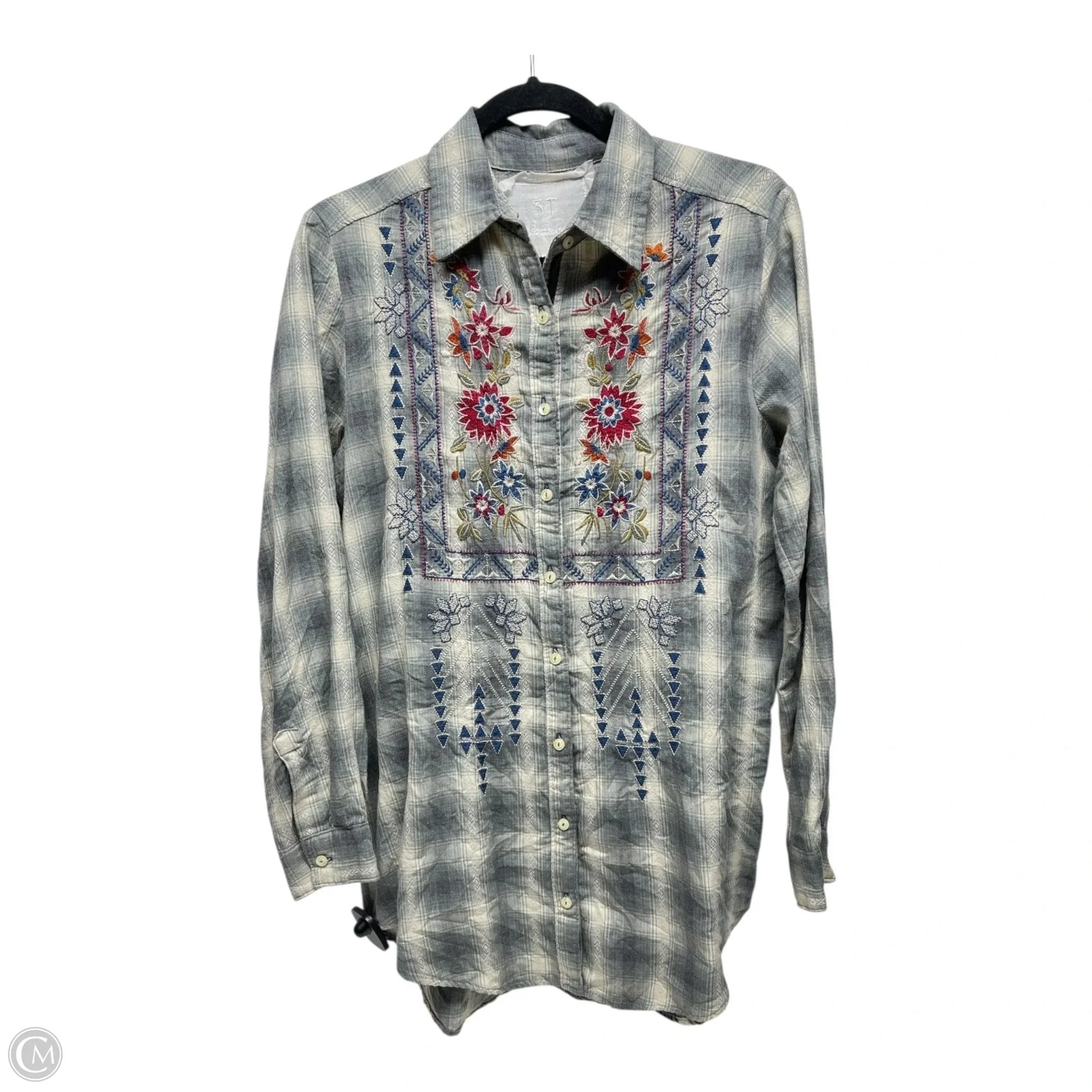 Top Long Sleeve By Johnny Was In Grey & White, Size: S