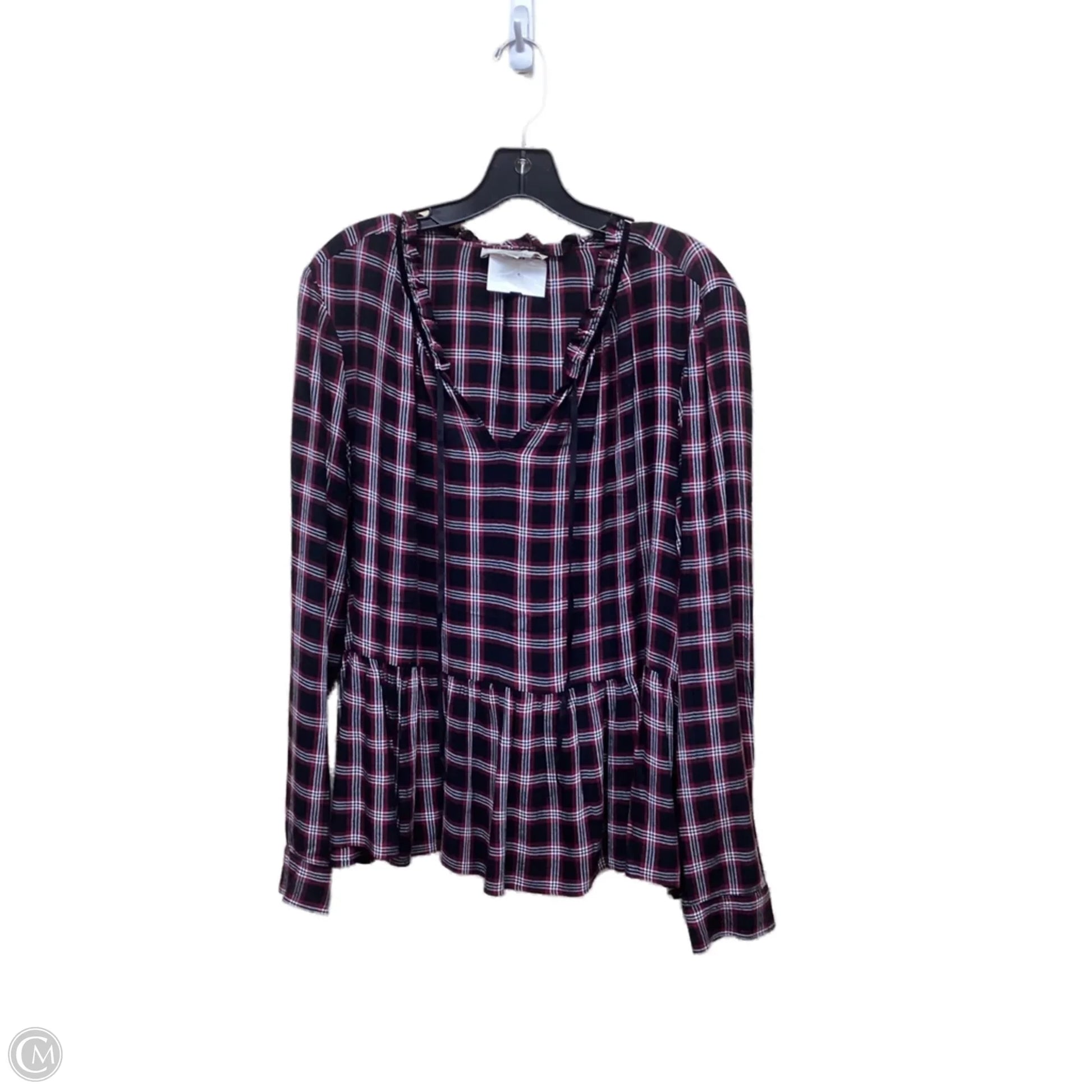 Top Long Sleeve By Loft In Checkered Pattern, Size: L