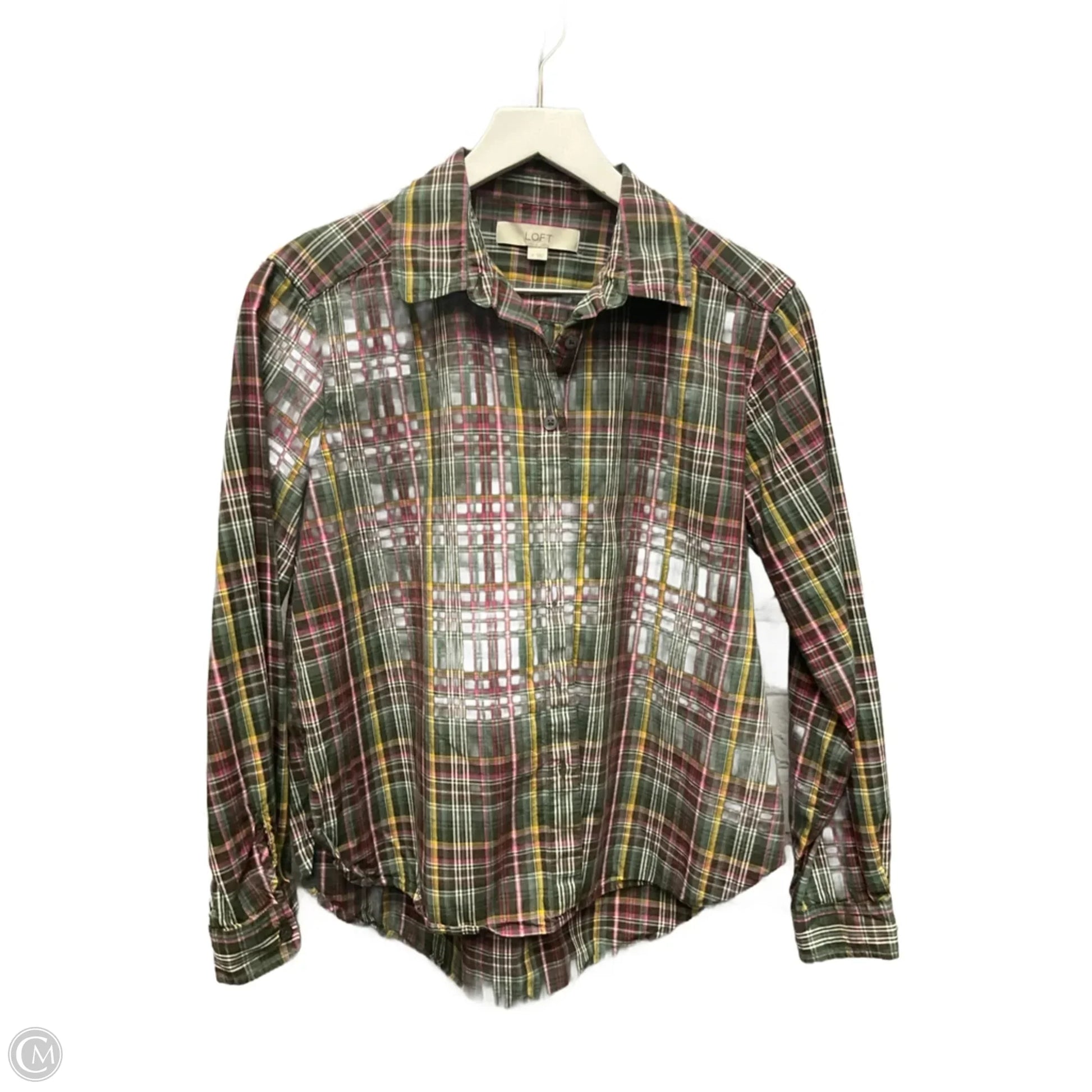 Top Long Sleeve By Loft In Plaid Pattern, Size: S
