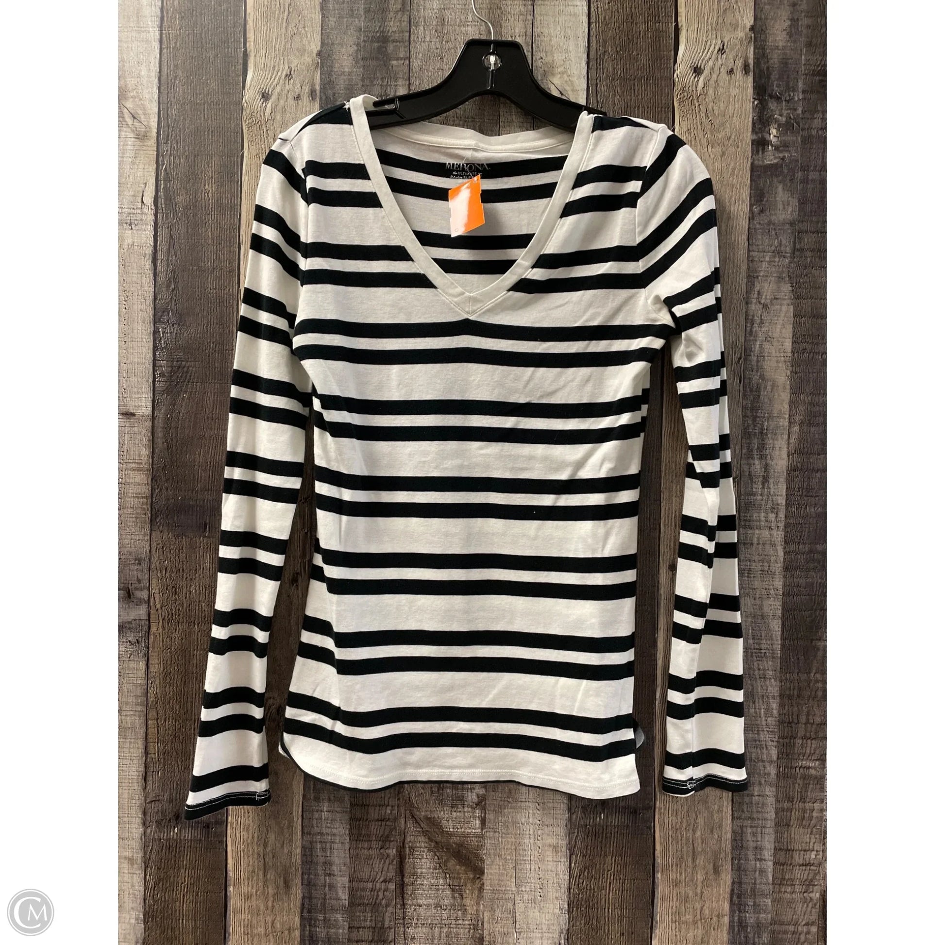 Top Long Sleeve By Merona In Black & White, Size: S
