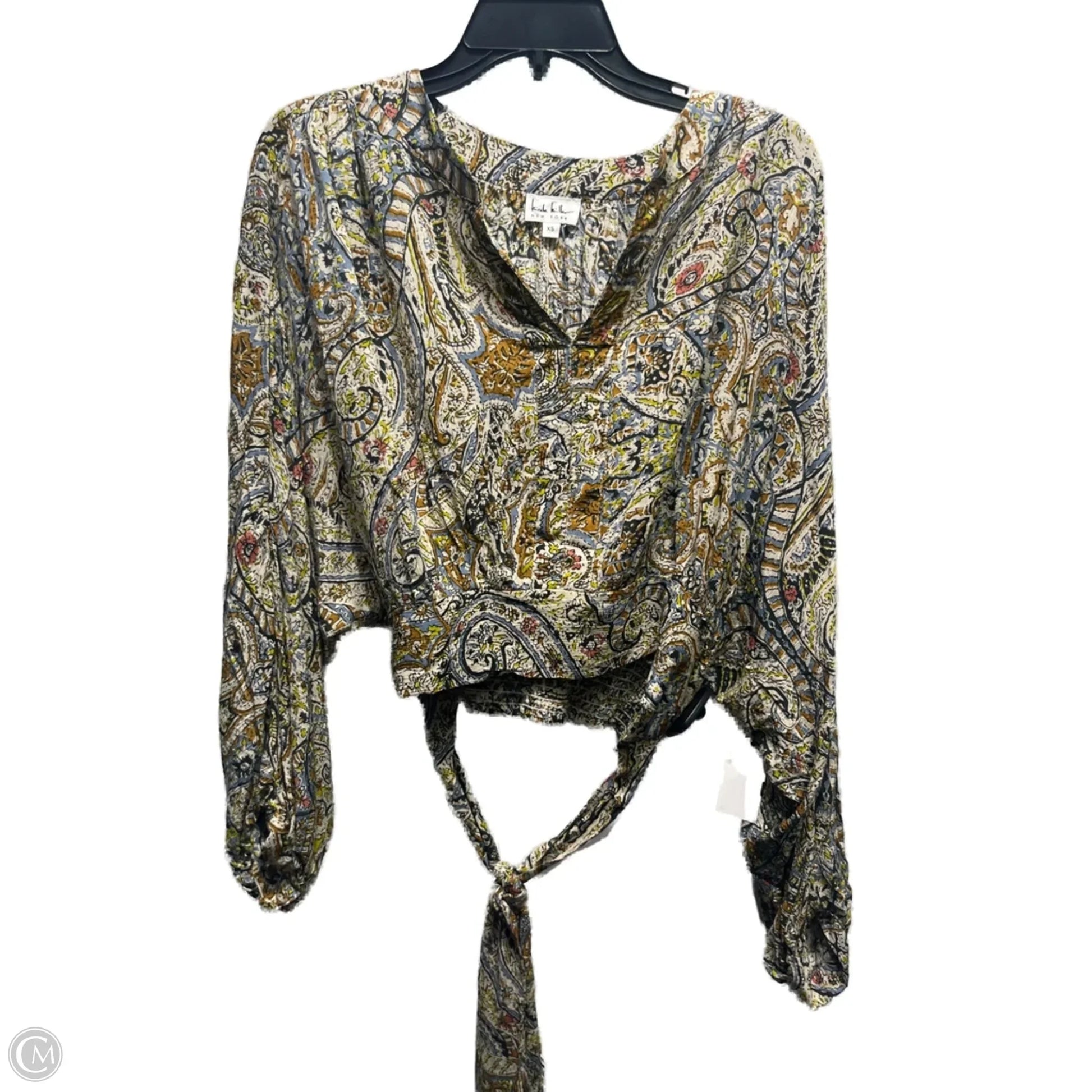 Top Long Sleeve By Nicole Miller In Blue & Yellow, Size: Xs