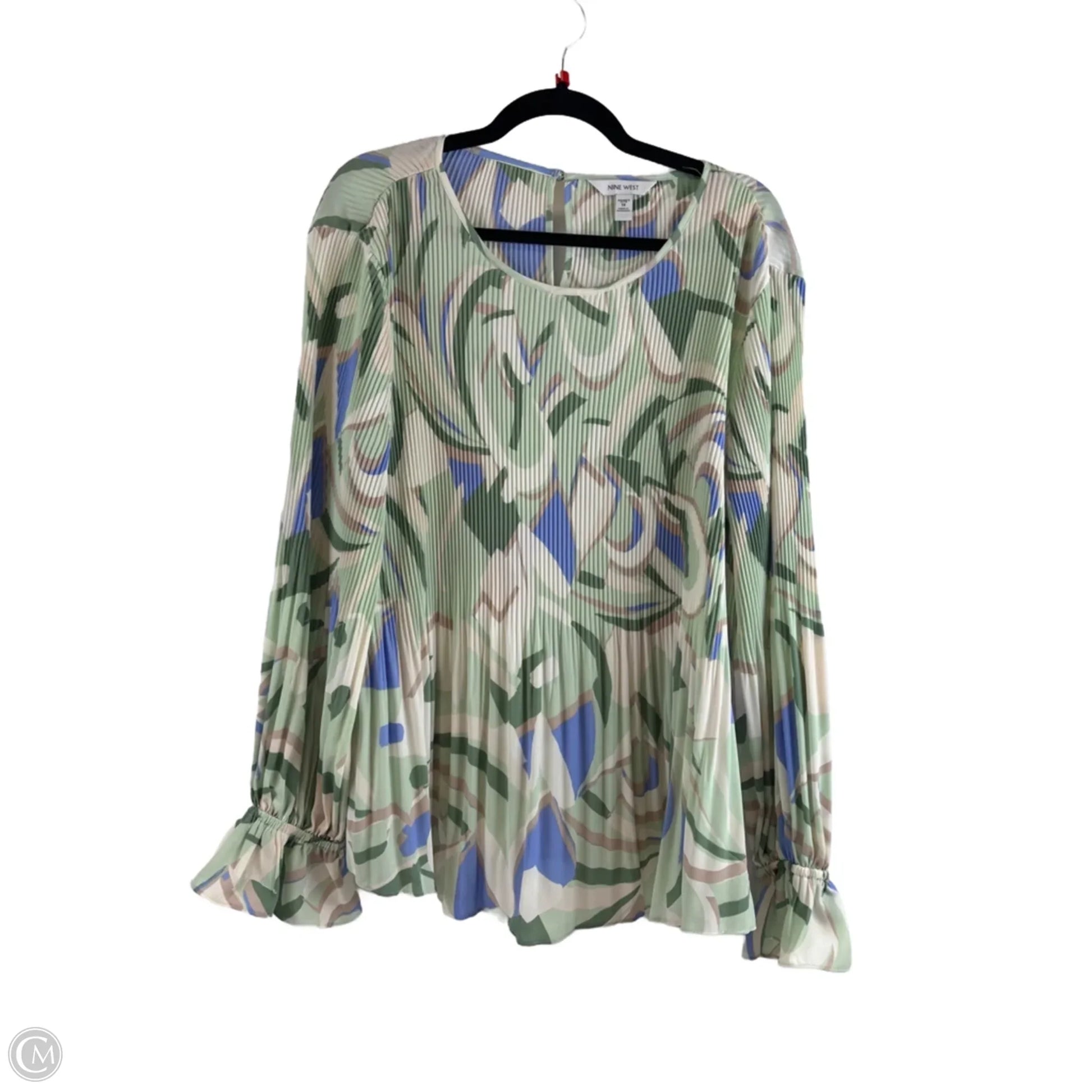 Top Long Sleeve By Nine West In Green & Tan, Size: 1x