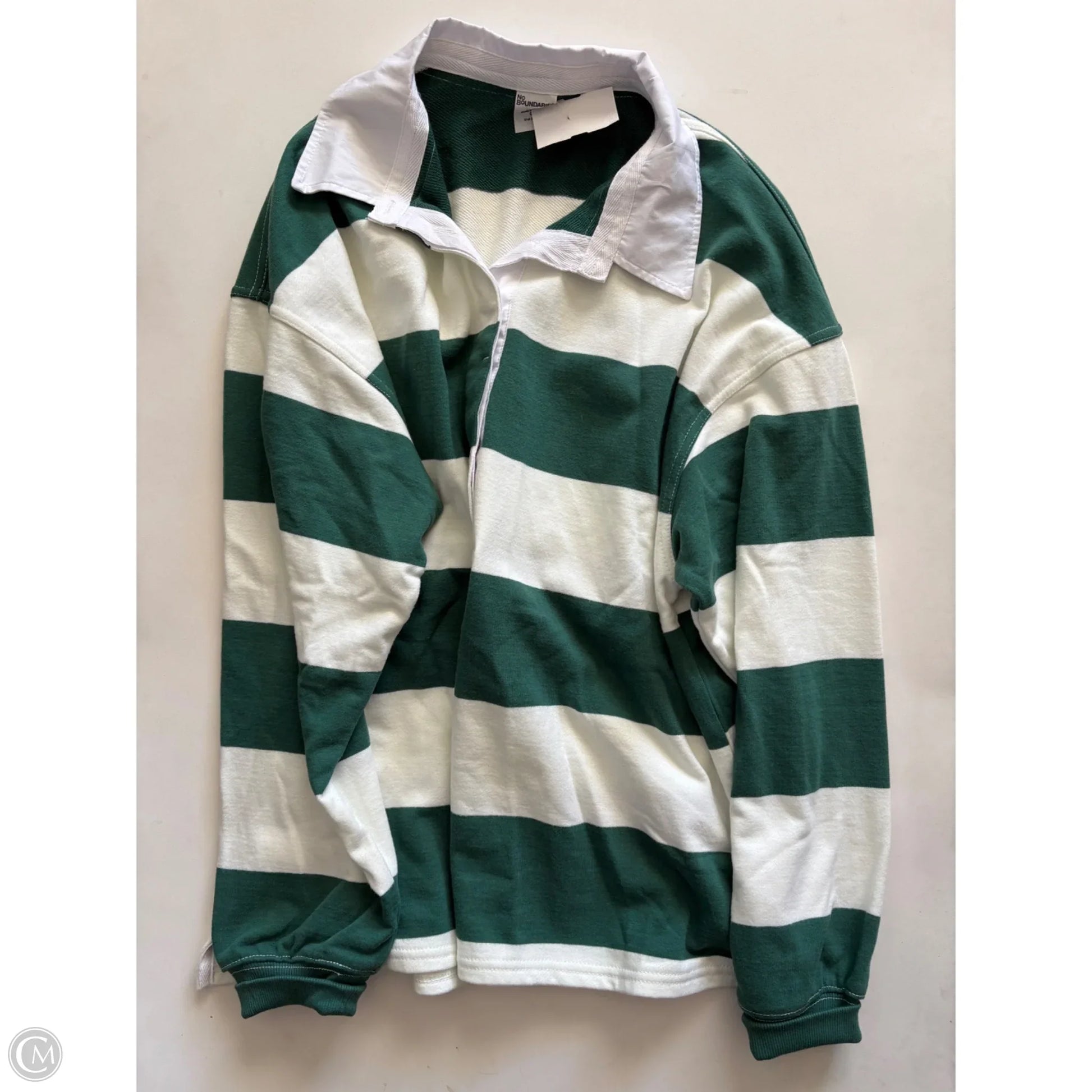 Top Long Sleeve By No Boundaries In Green & White, Size: M