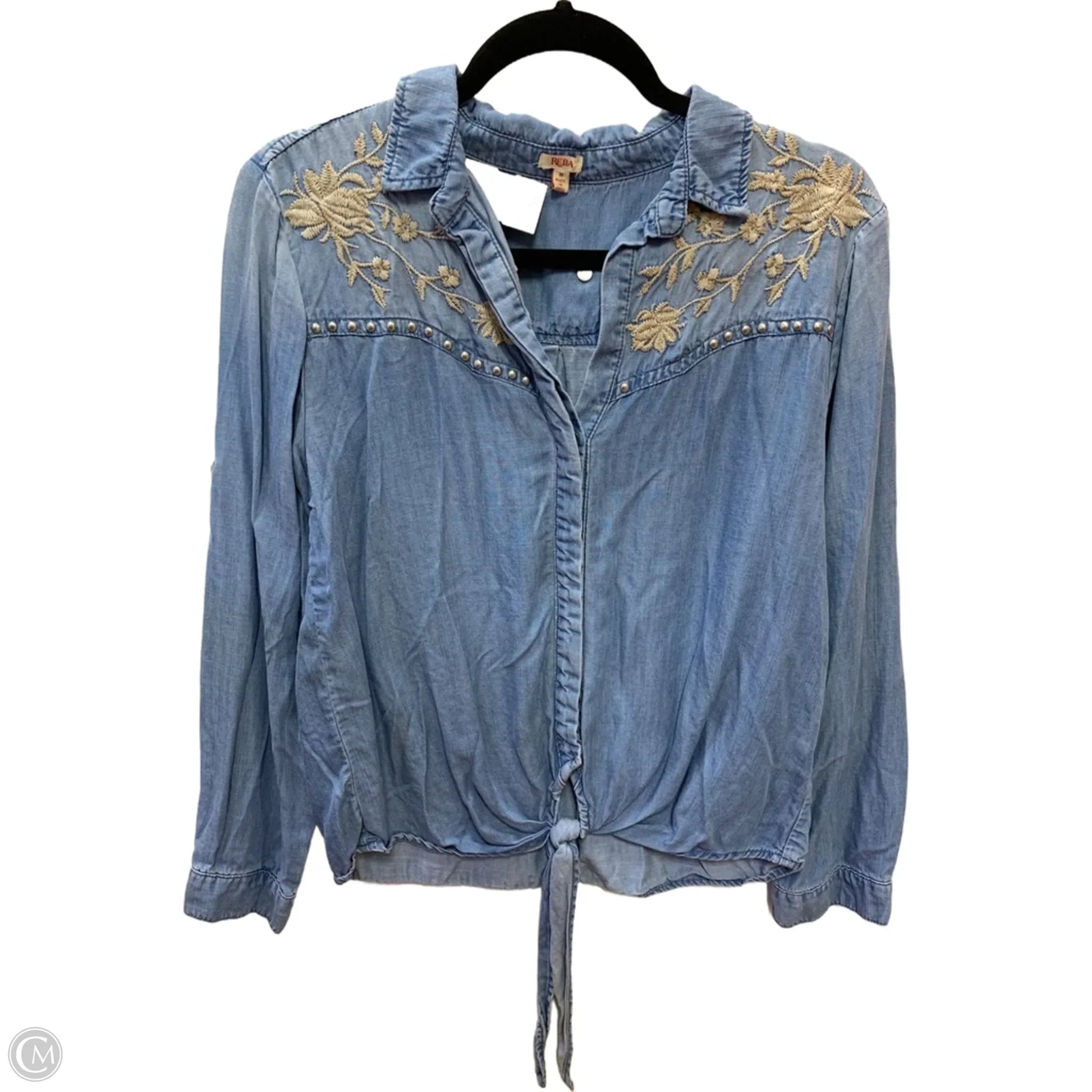 Top Long Sleeve By Reba In Blue Denim, Size: M