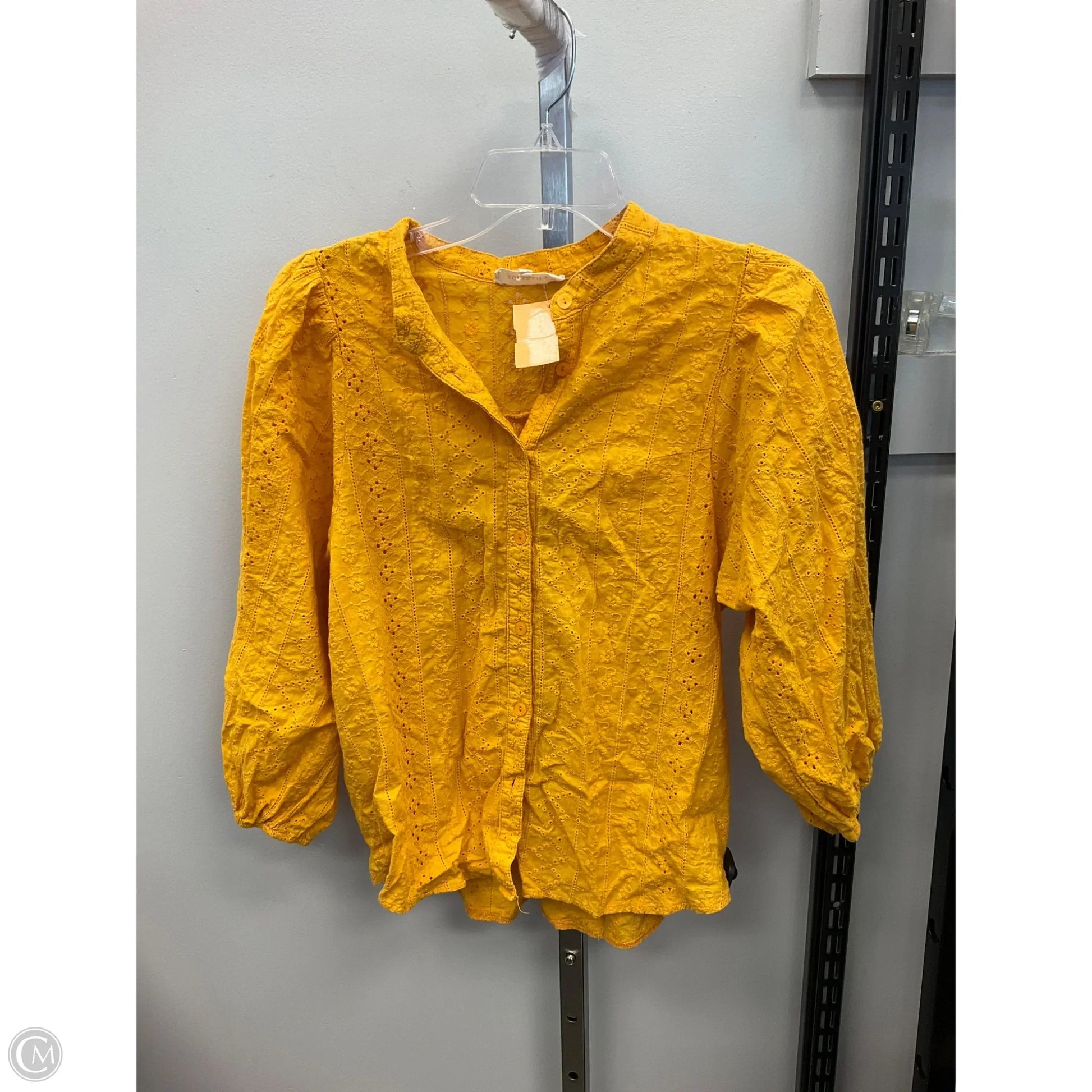 Top Long Sleeve By Solitaire In Gold, Size: L