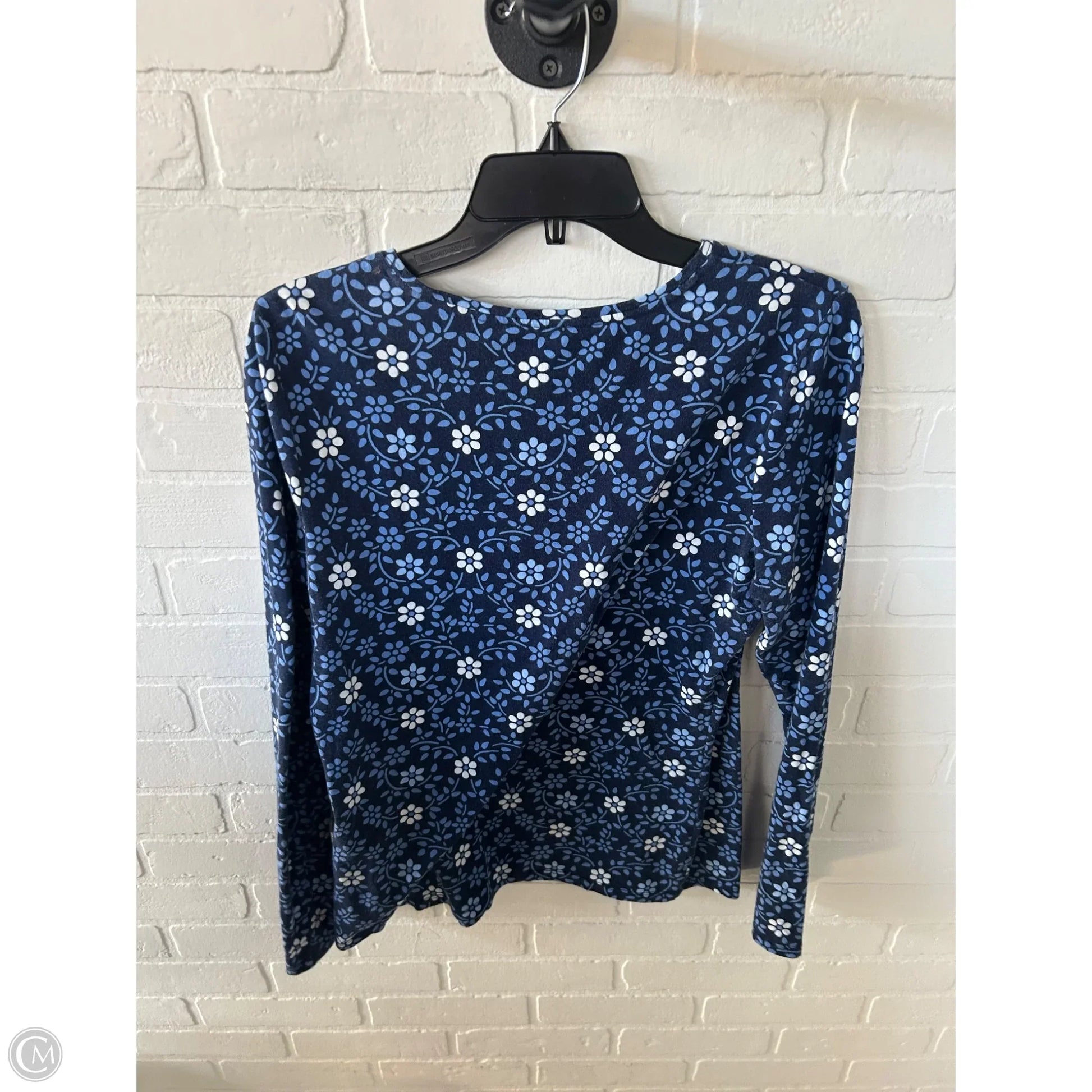 Top Long Sleeve By Talbots In Blue & White, Size: M