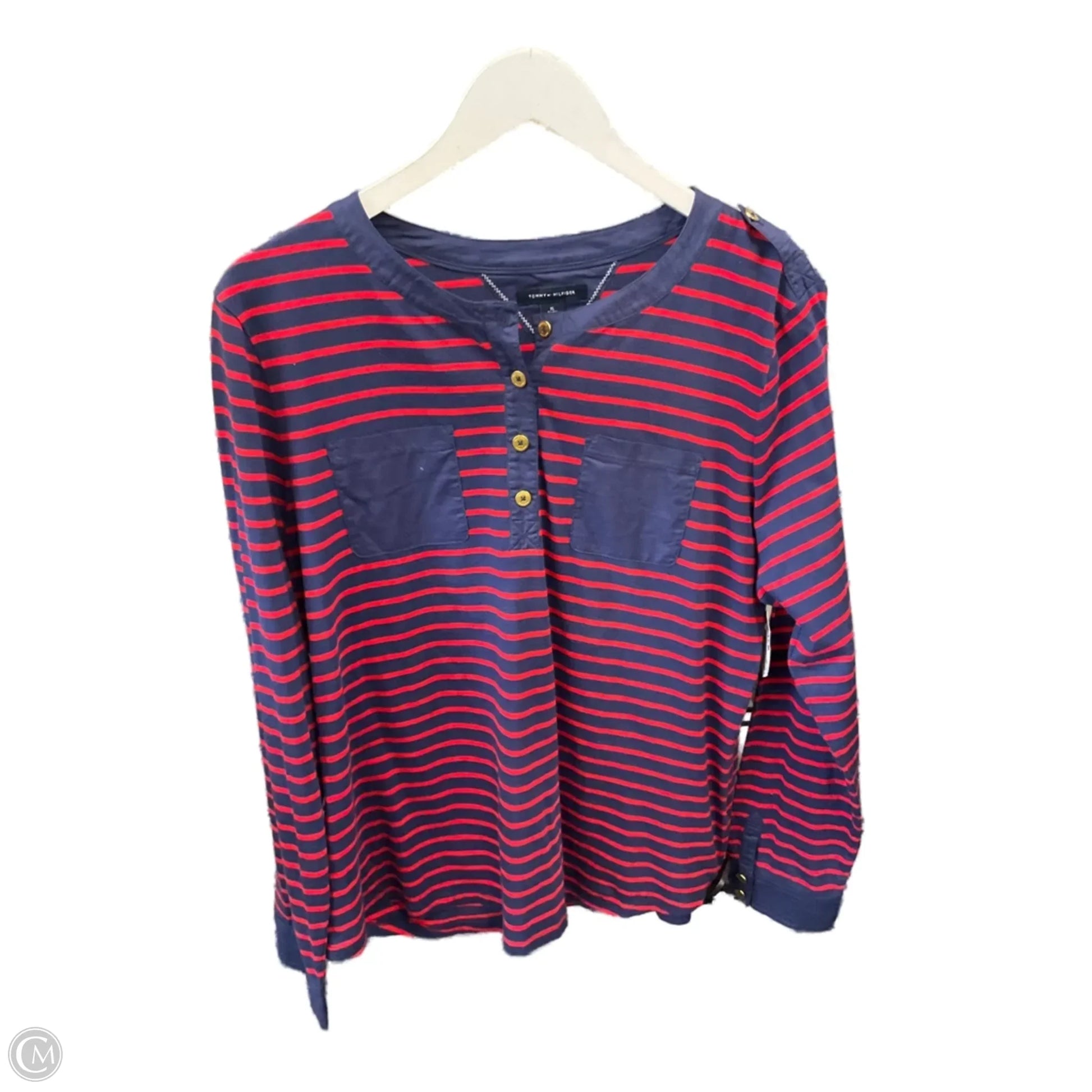 Top Long Sleeve By Tommy Hilfiger In Blue & Red, Size: Xl