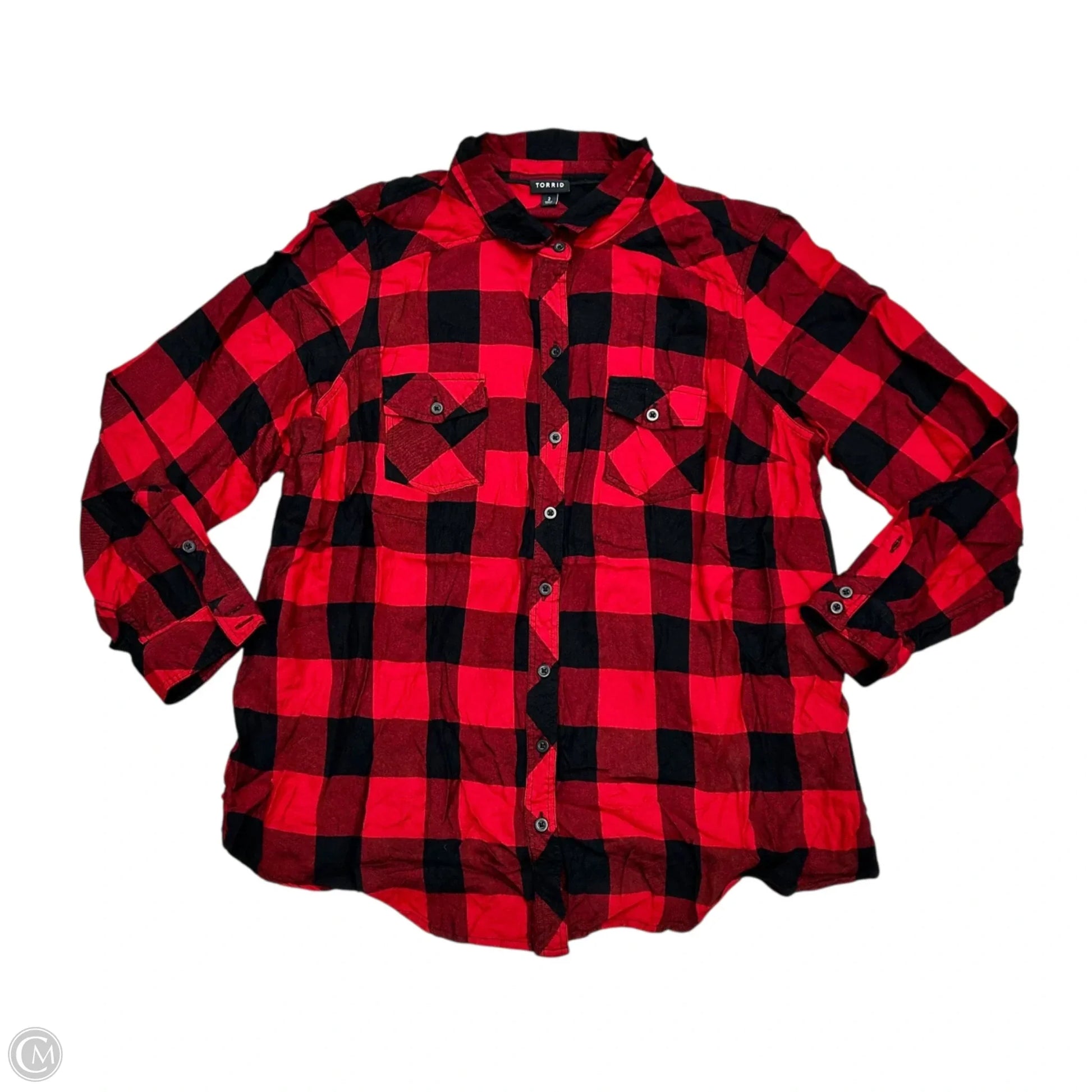 Top Long Sleeve By Torrid In Plaid Pattern, Size: 2x
