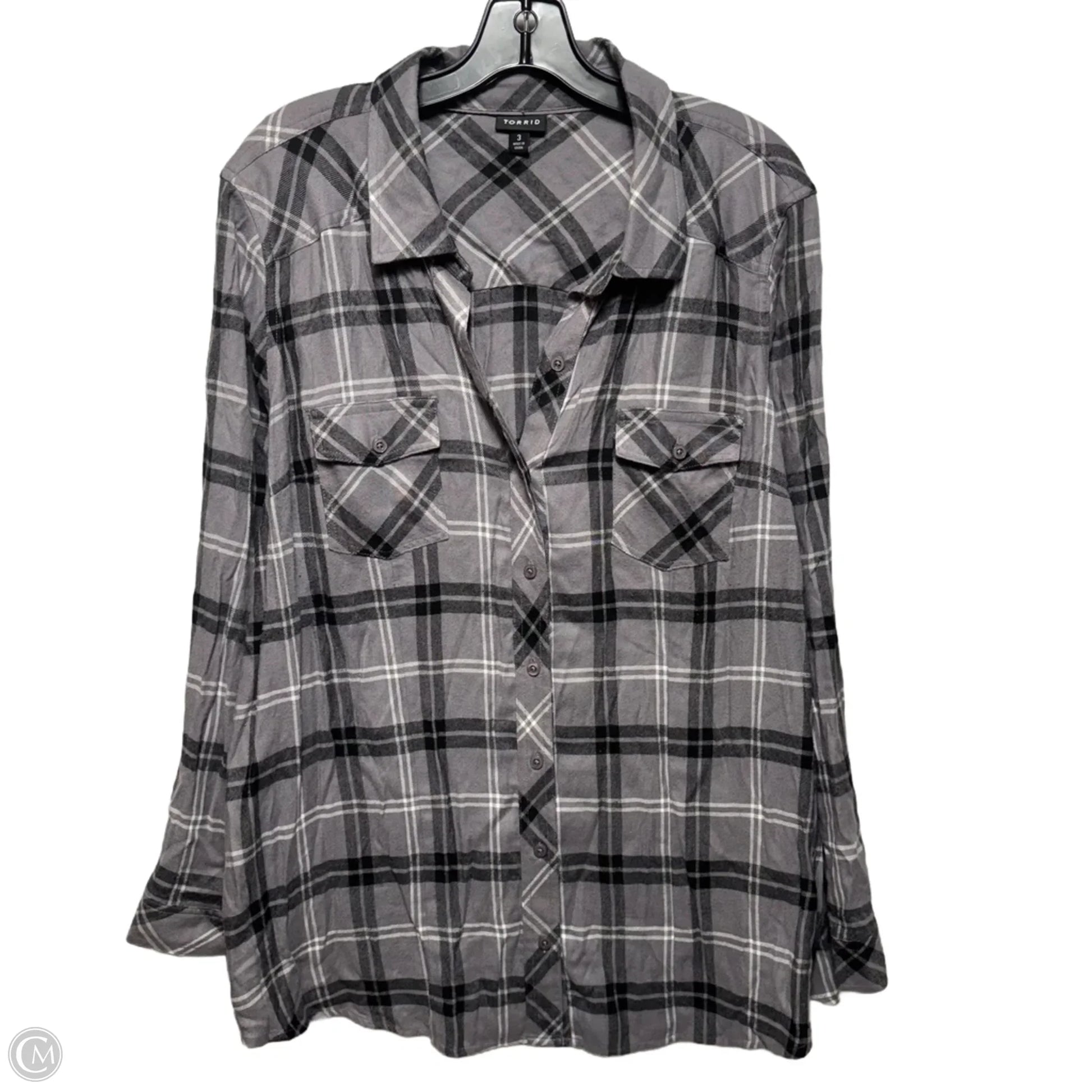Top Long Sleeve By Torrid In Plaid Pattern, Size: 3x