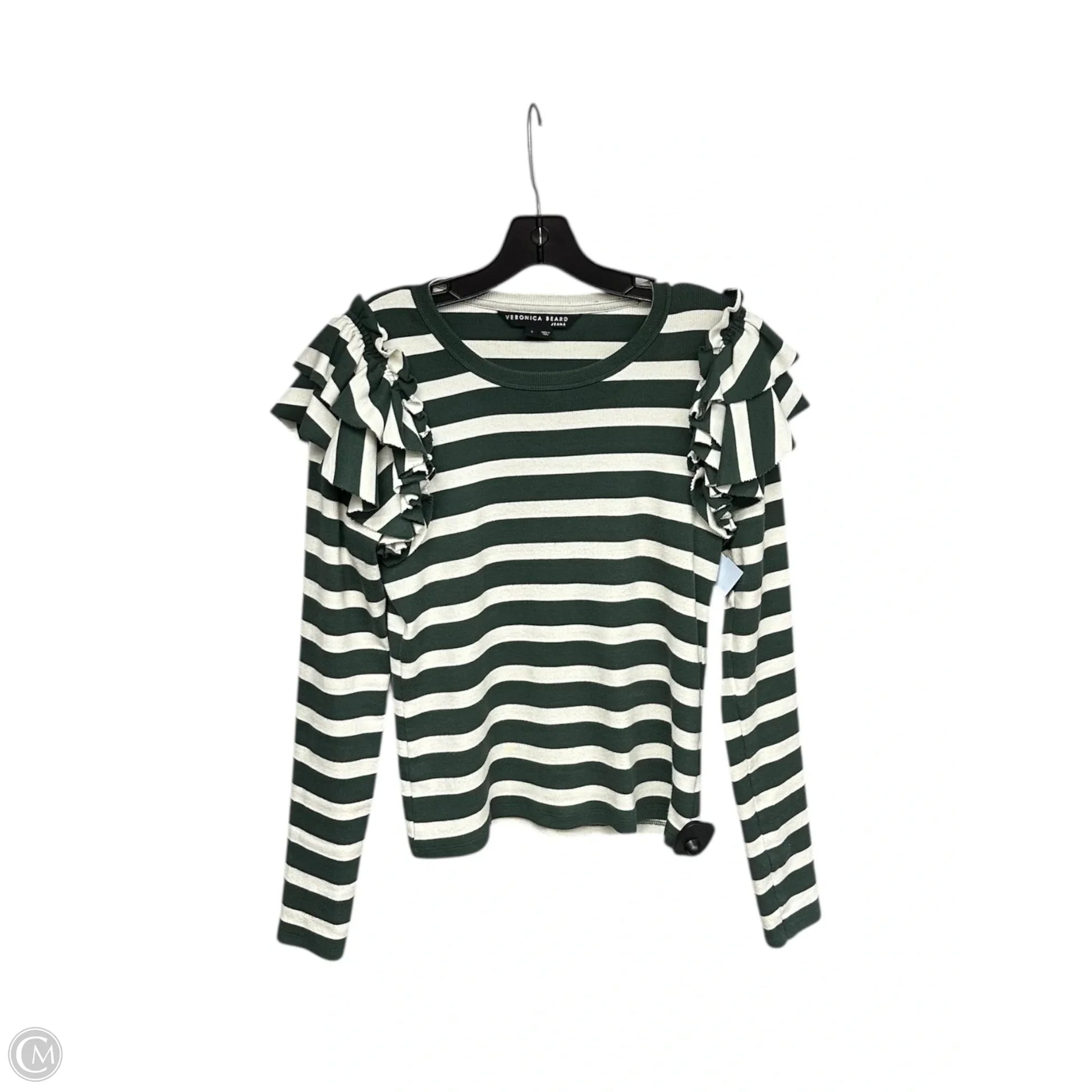Top Long Sleeve By Veronica Beard In Green & White, Size: S