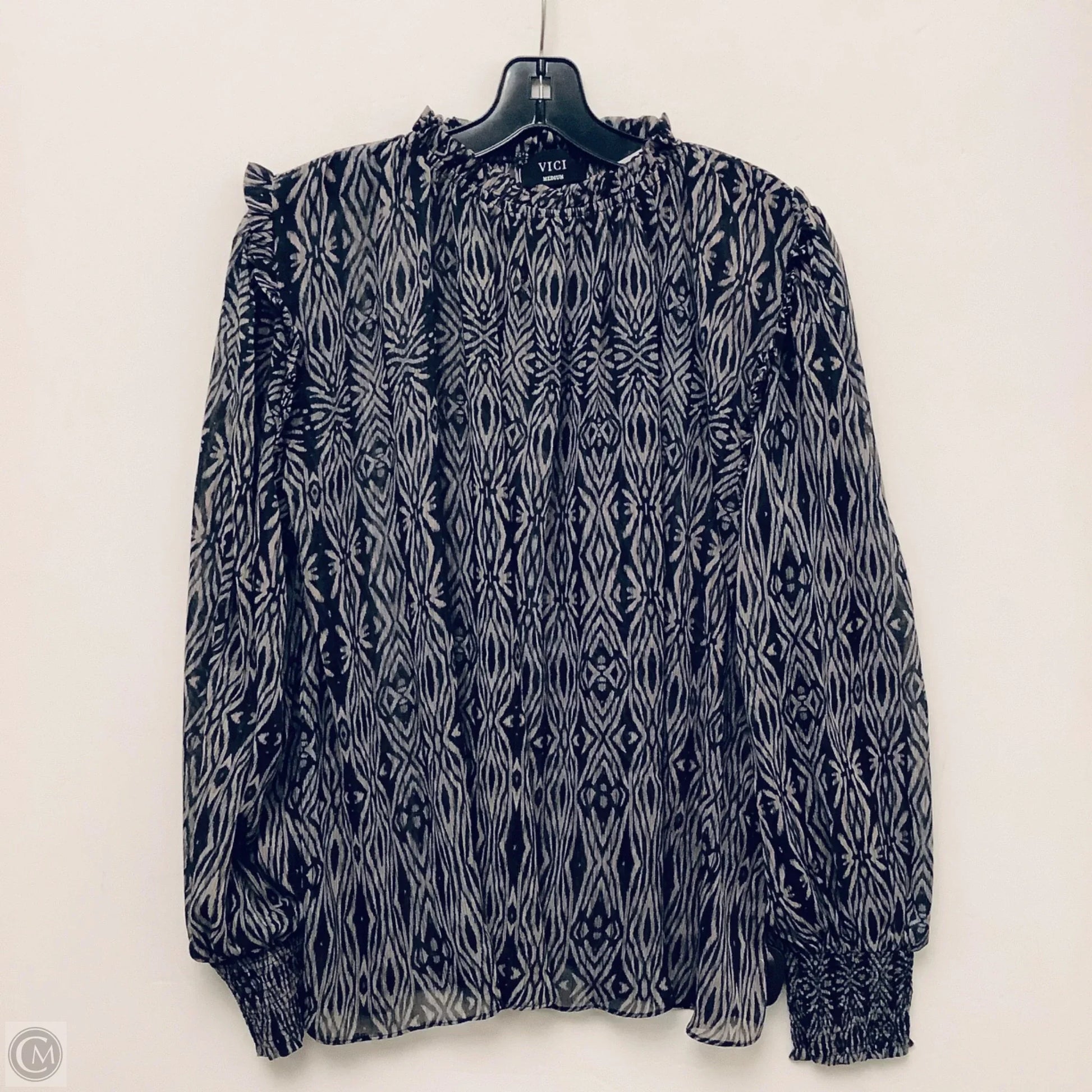 Top Long Sleeve By Vici In Black & Grey, Size: M
