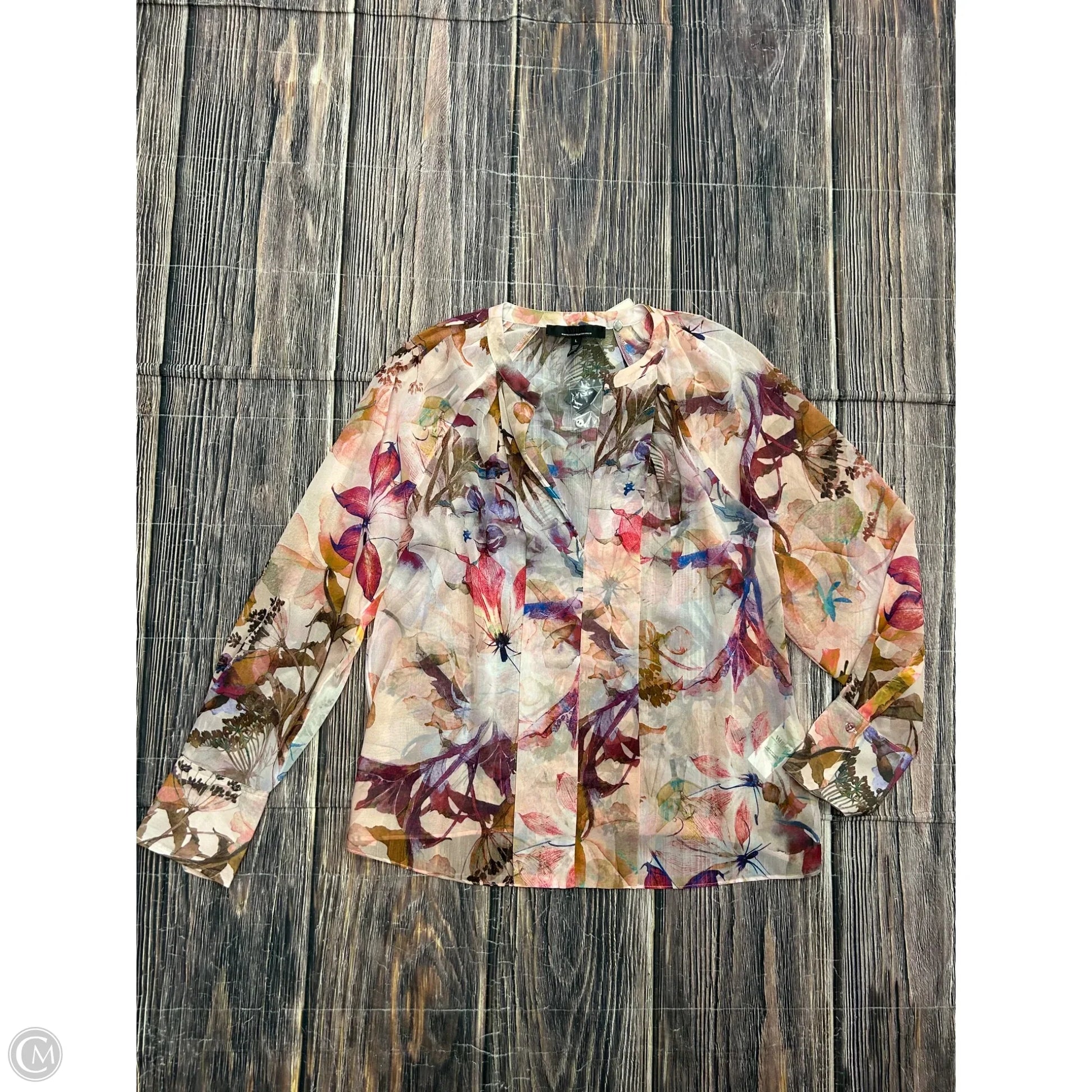 Drape yourself in rosy elegance with this Pink Top Long Sleeve from White House Black Market in size L. Luxurious fabric meets bold femininity.
