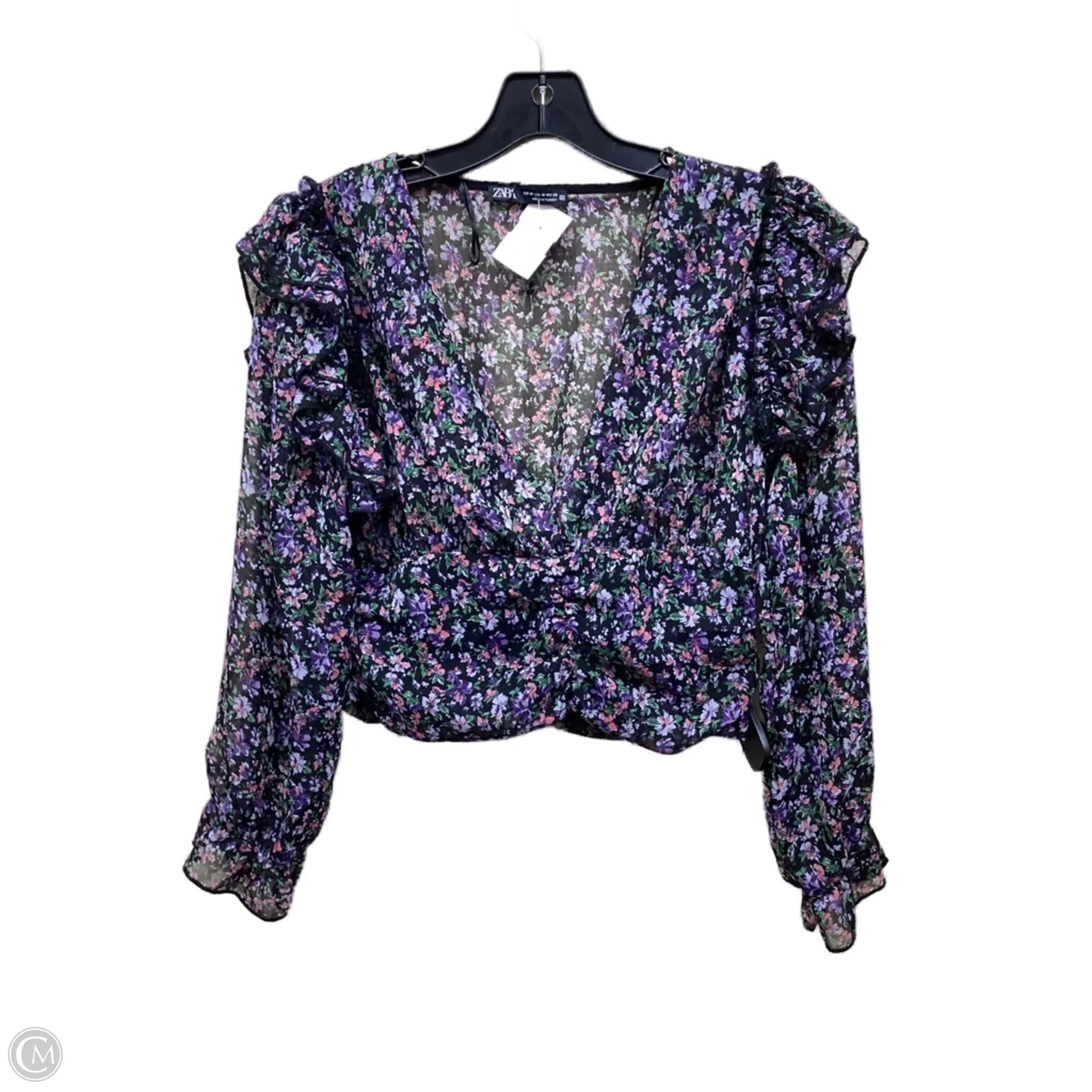 Top Long Sleeve By Zara In Floral Print, Size: M