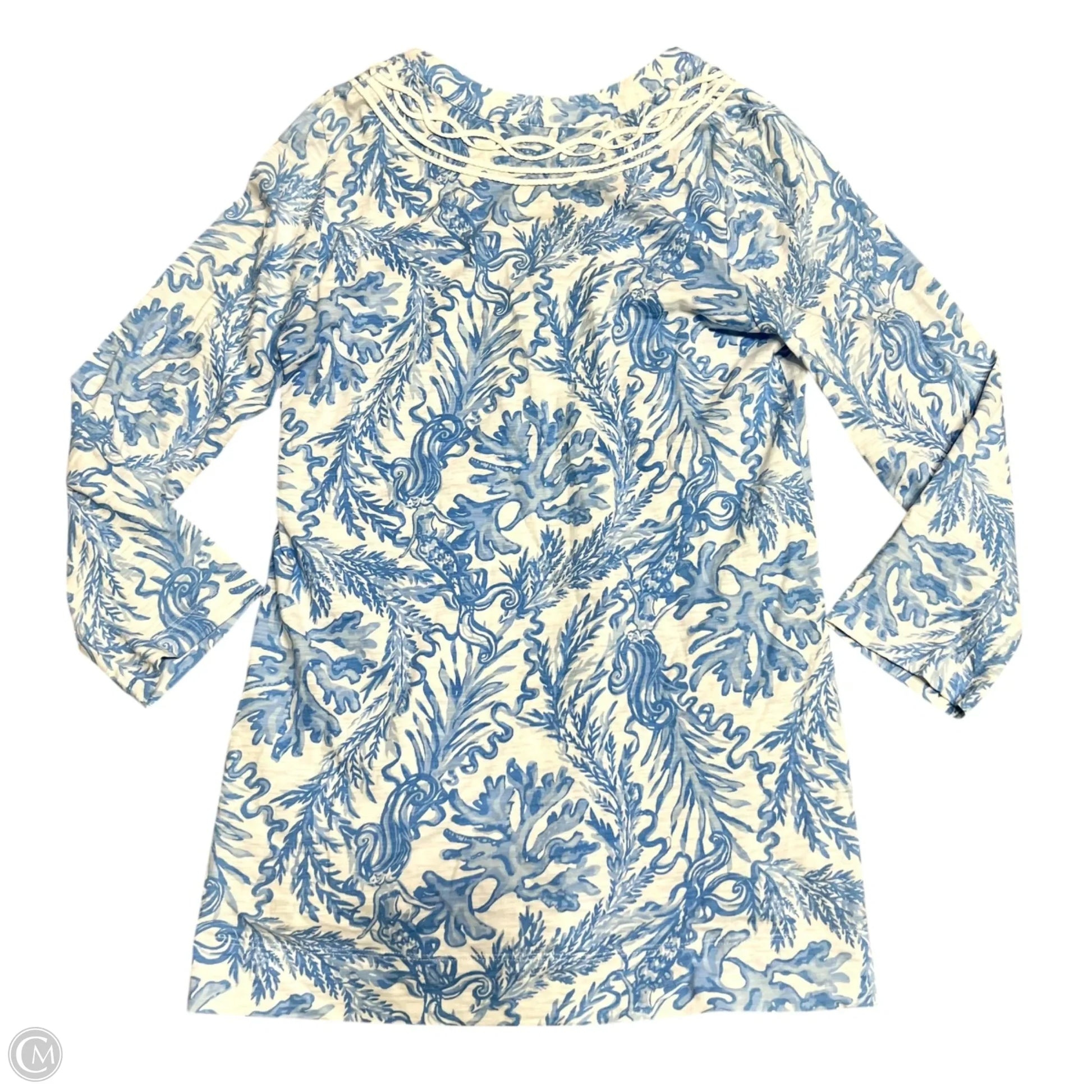 Top Long Sleeve Designer By Lilly Pulitzer In Blue & White, Size: S