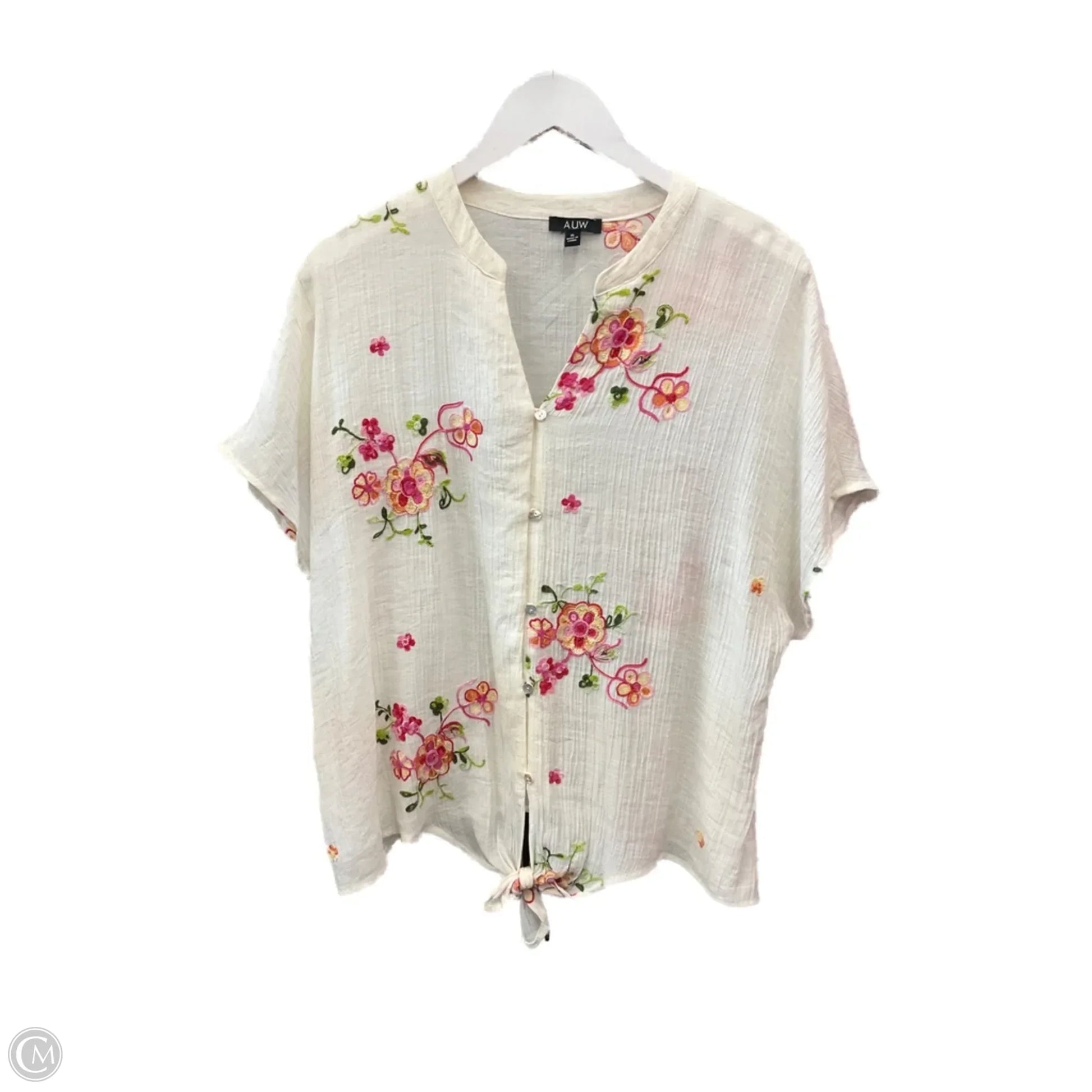 Top Short Sleeve By Auw In Cream & Pink, Size: Xl