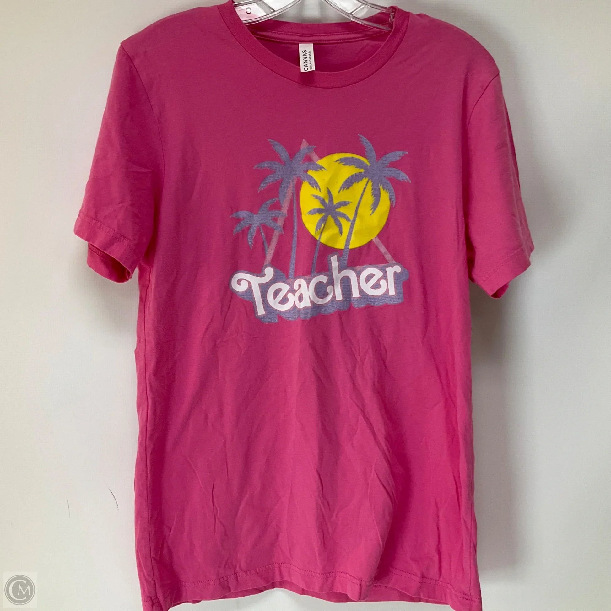 Top Short Sleeve By Bella + Canvas In Pink & Purple, Size: M