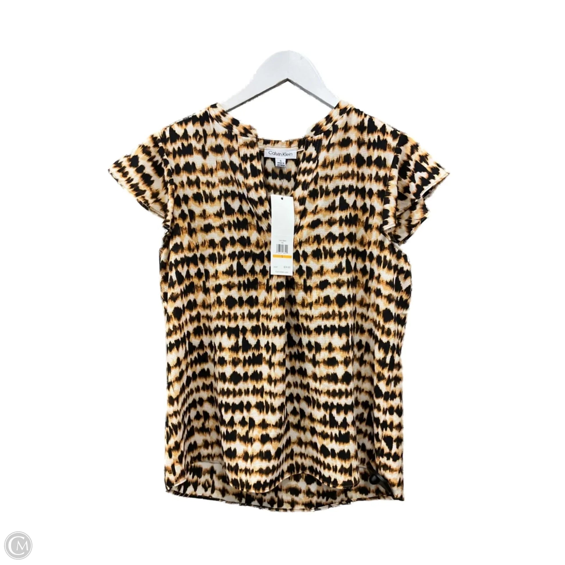 Top Short Sleeve By Calvin Klein In Animal Print, Size: S