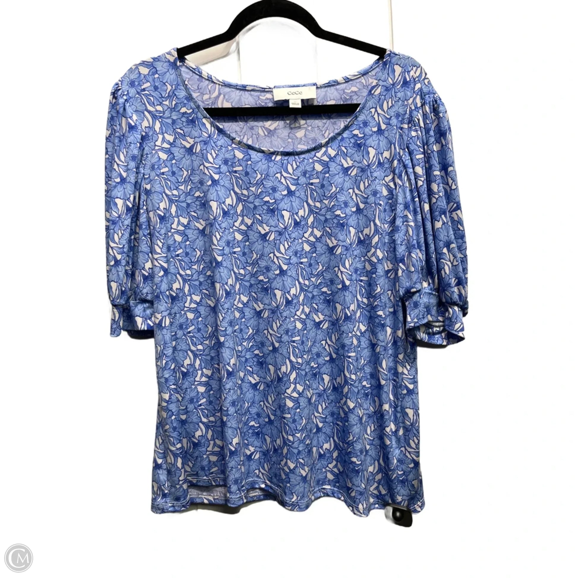 Top Short Sleeve By Cece In Blue & White, Size: Xl