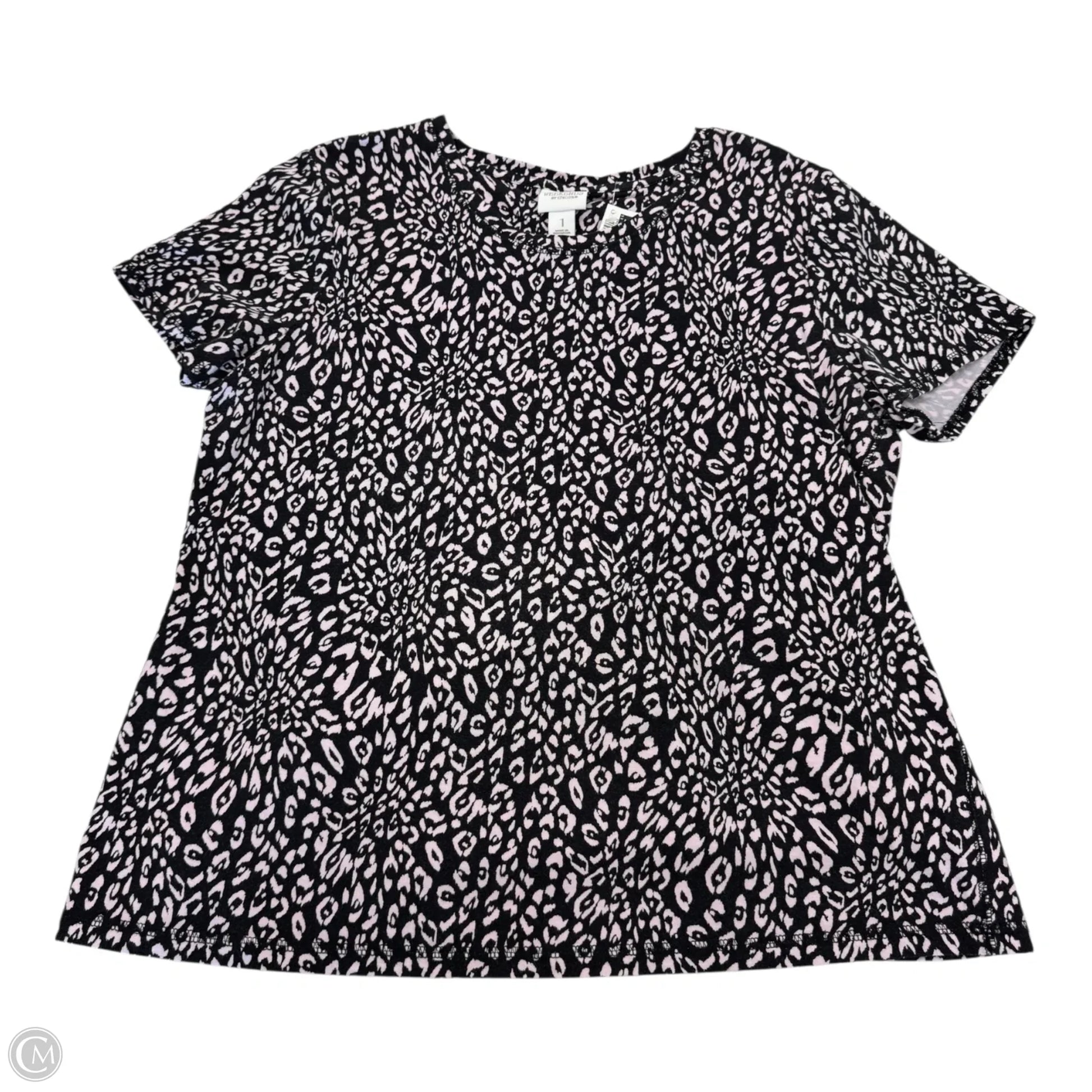 Top Short Sleeve By Chicos In Black & Pink, Size: 1 (Medium)