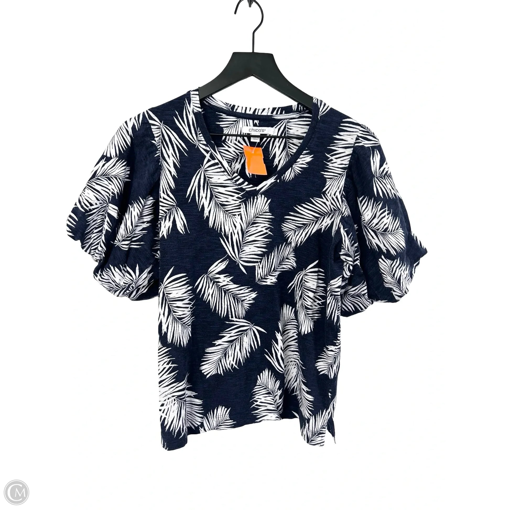 Top Short Sleeve By Chicos In Blue & White, Size: S