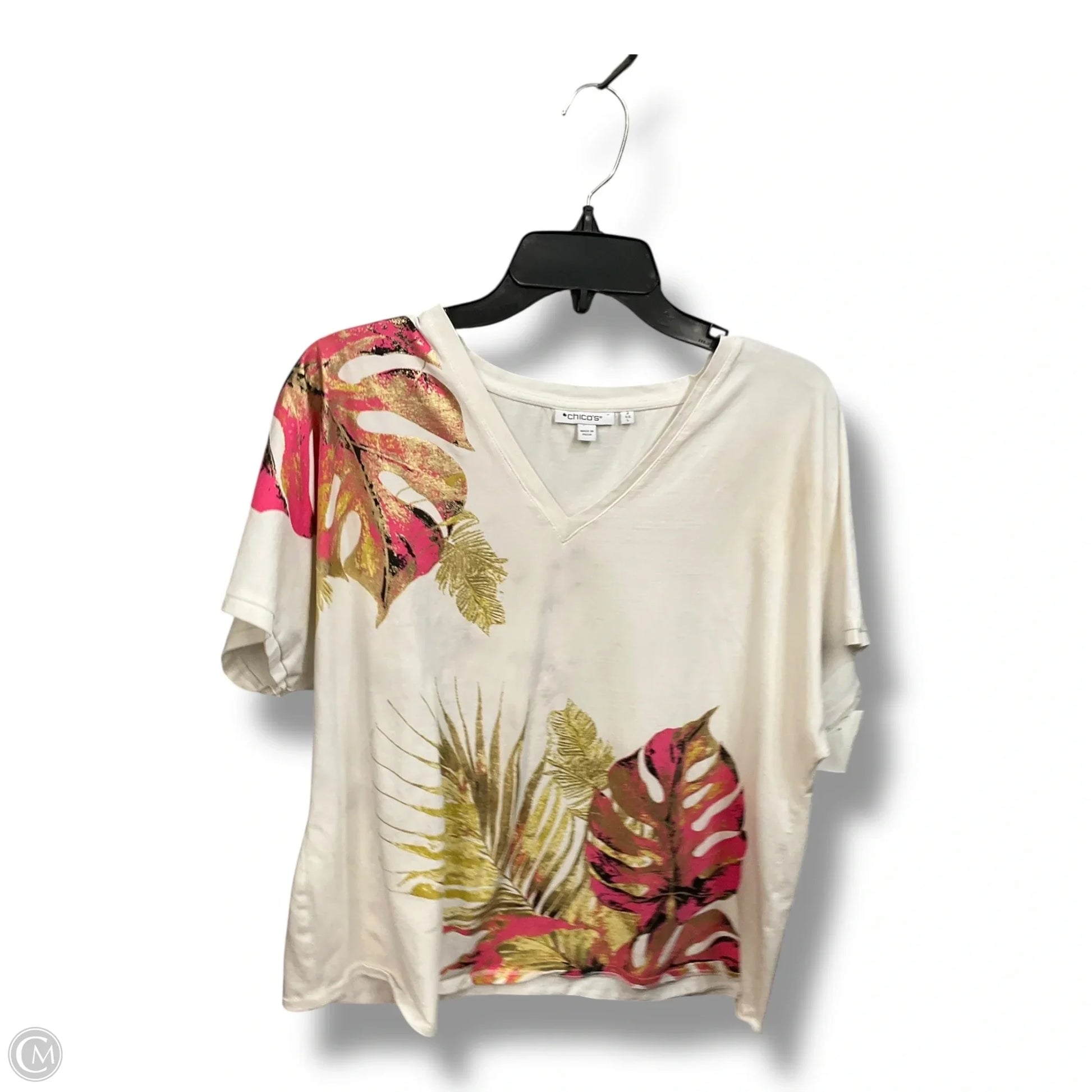 Top Short Sleeve By Chicos In White, Size: L