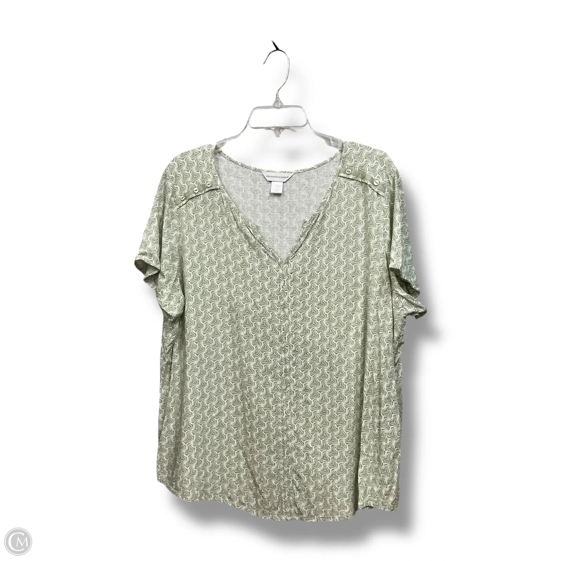 Top Short Sleeve By Christopher And Banks In Green & White, Size: Xl