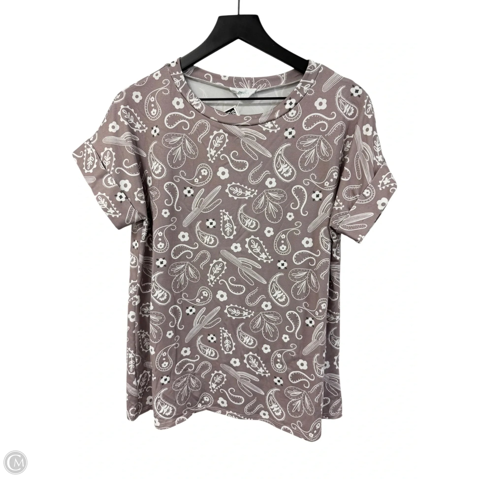 Top Short Sleeve By Clothes Mentor In Tan & White, Size: M