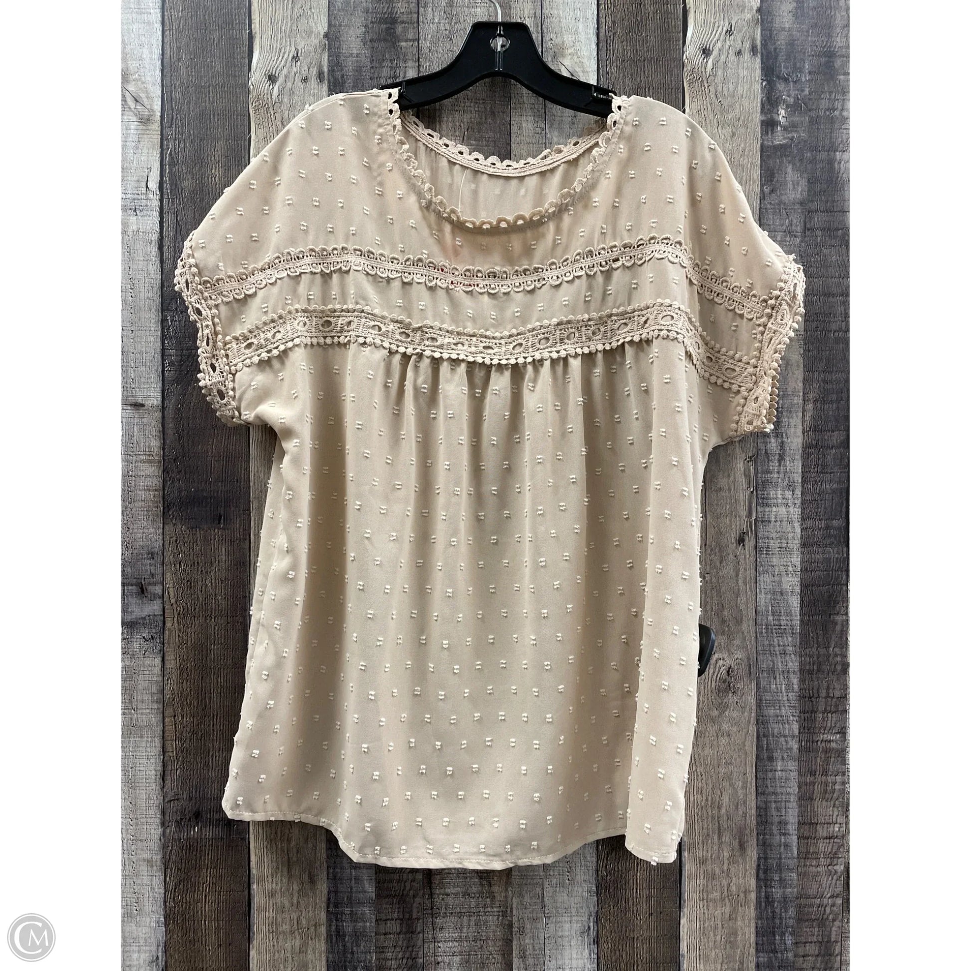 Top Short Sleeve By Cmf In Tan, Size: L