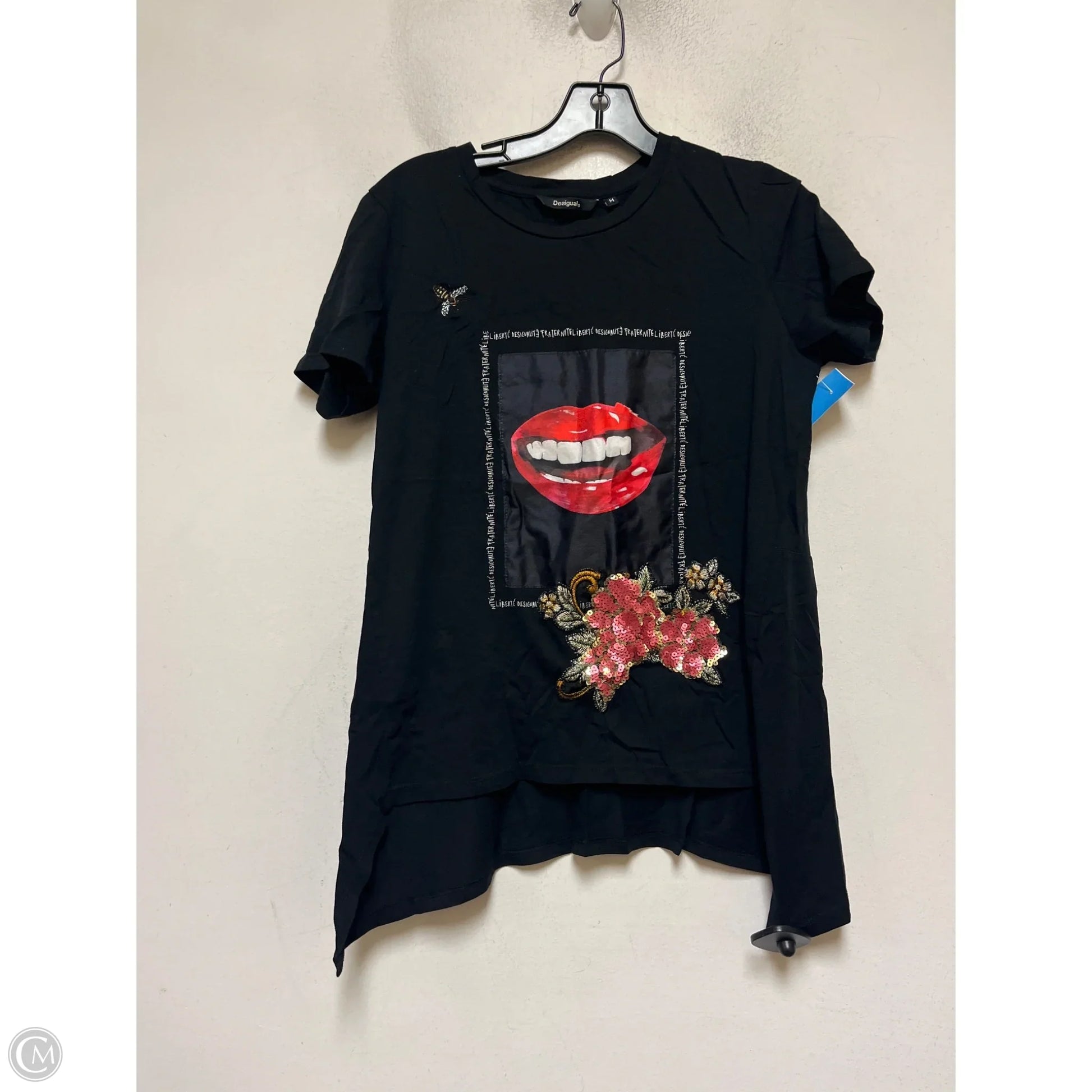 Top Short Sleeve By Desigual In Black, Size: M
