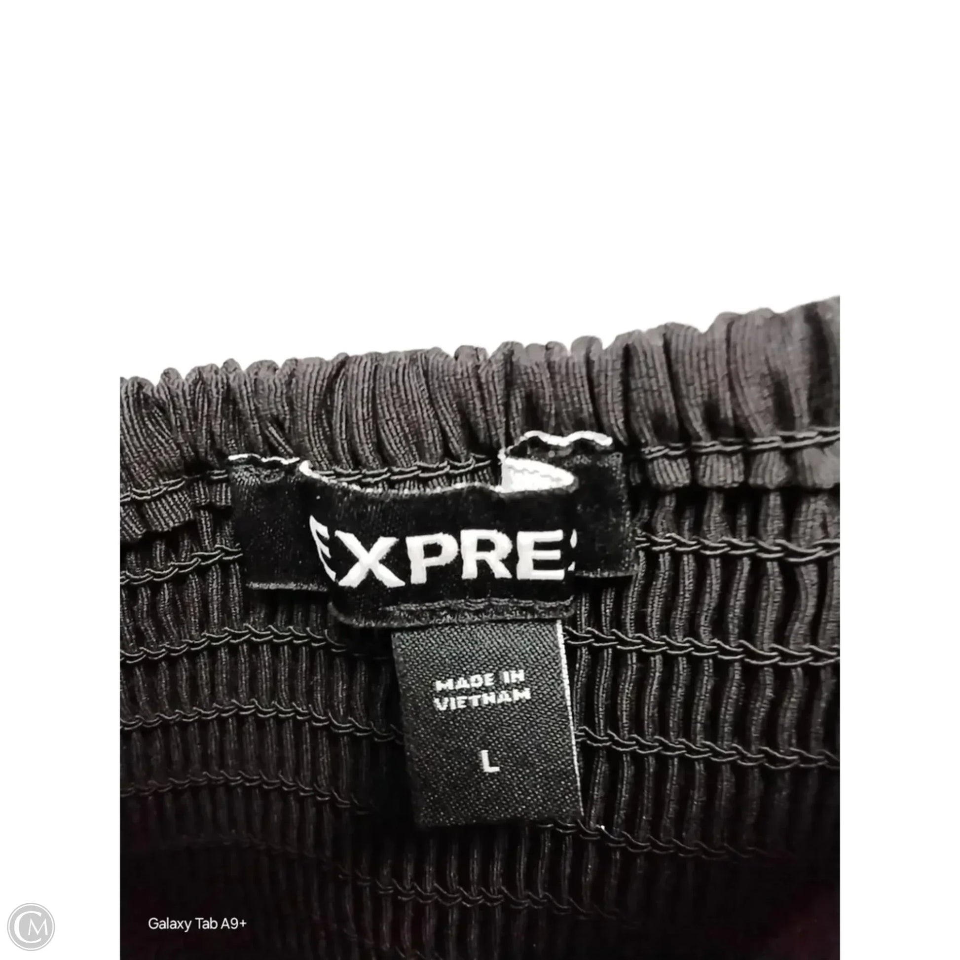 Unleash your charisma in this Express black top, size L. Embrace the bold hue and flattering fit for a look that commands attention.