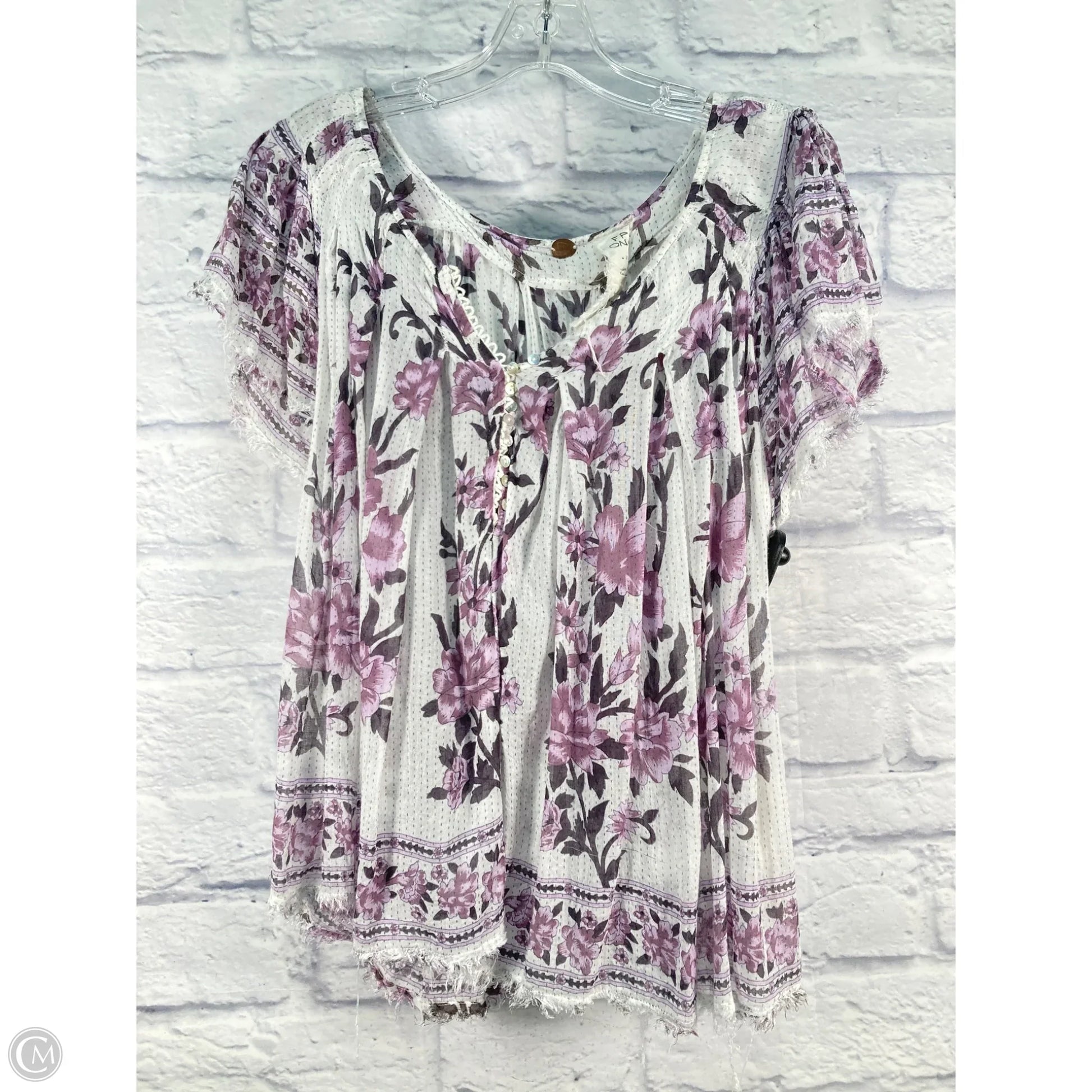 Top Short Sleeve By Free People In Purple & White, Size: M