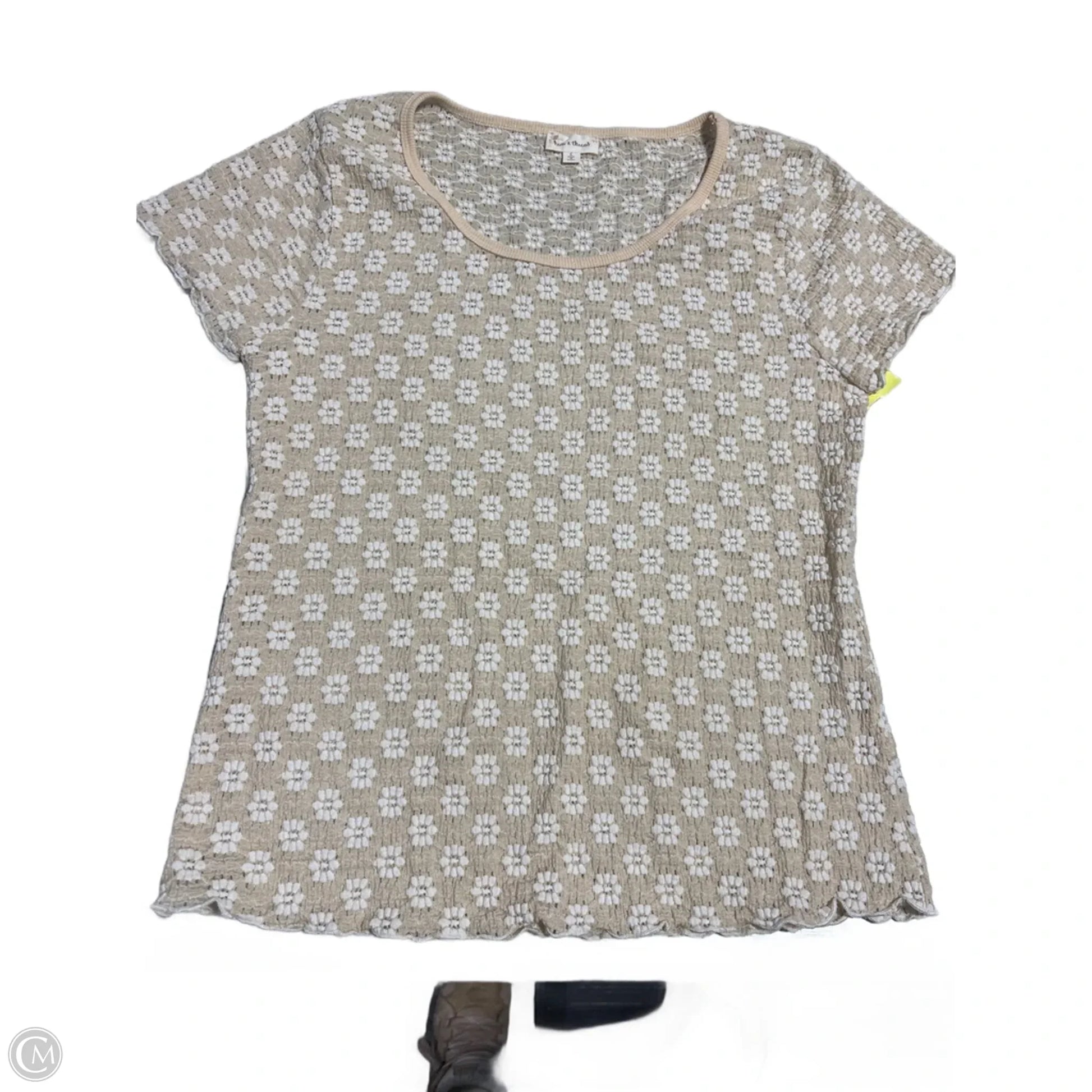Top Short Sleeve By Hem & Thread In Tan, Size: L