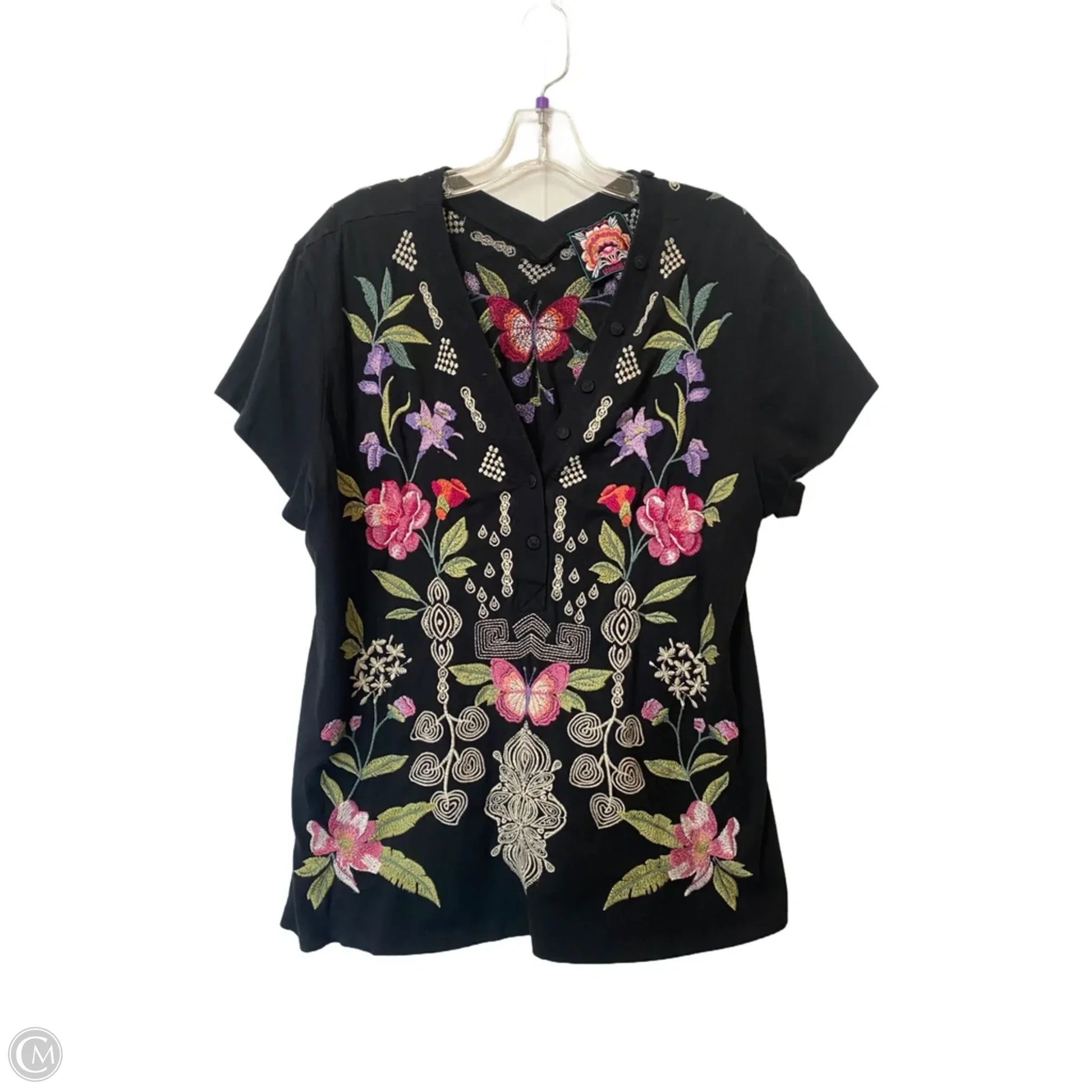 Top Short Sleeve By Johnny Was In Floral Print, Size: Xl