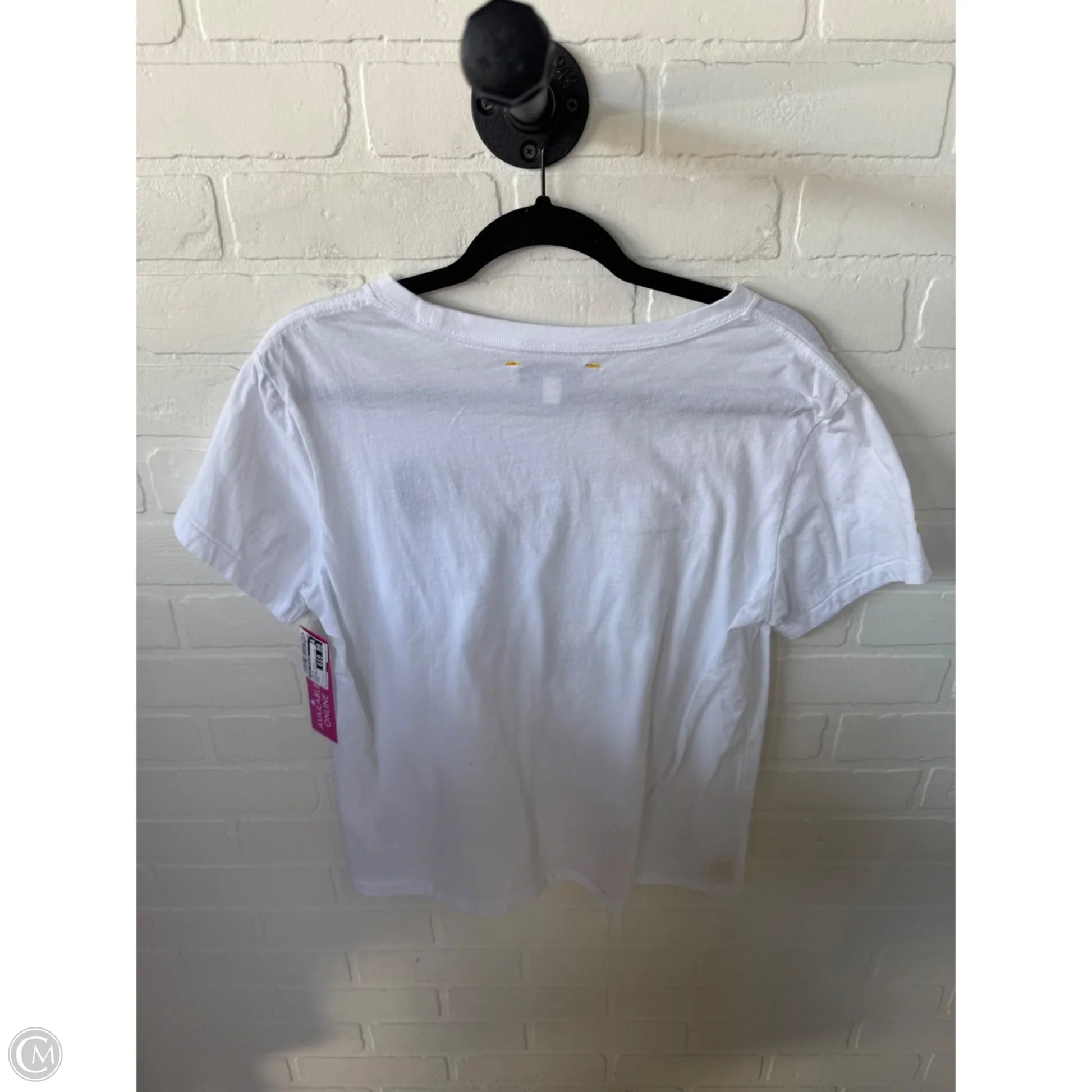 Top Short Sleeve By Kerri Rosenthal In White & Yellow, Size: M
