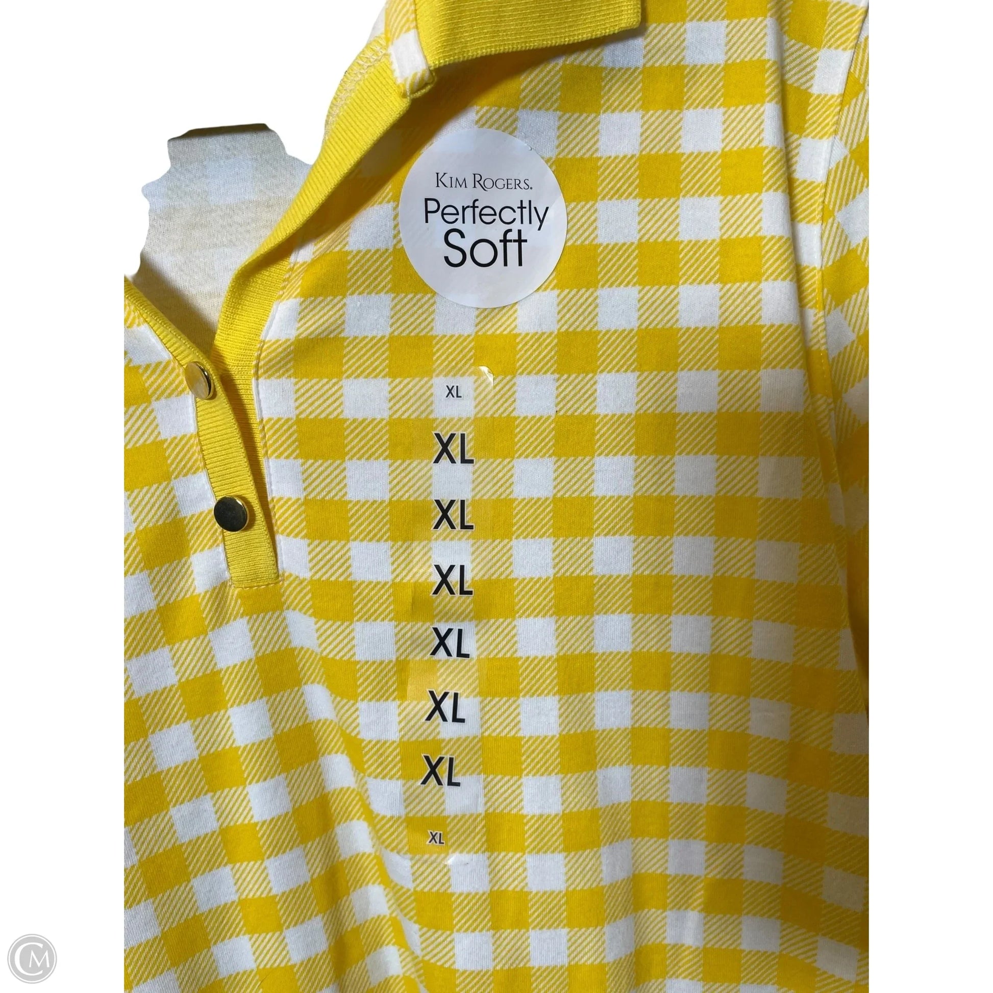 Top Short Sleeve By Kim Rogers In White & Yellow, Size: Xl