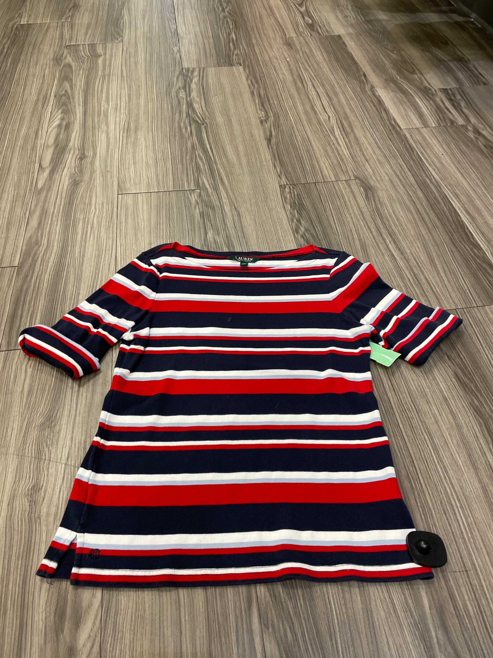 Top Short Sleeve By Lauren By Ralph Lauren In Striped Pattern, Size: L