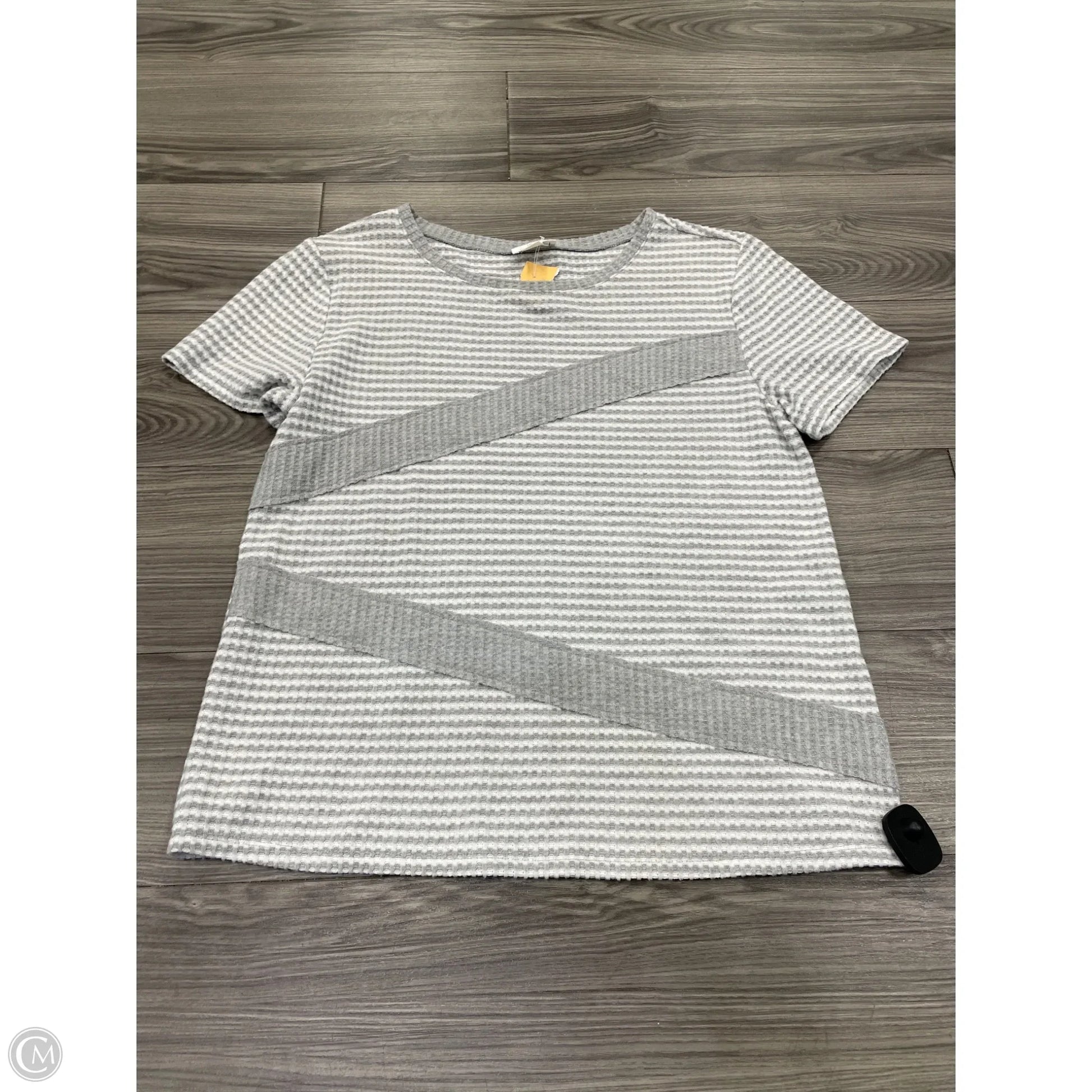 Top Short Sleeve By Loft In Grey & White, Size: L