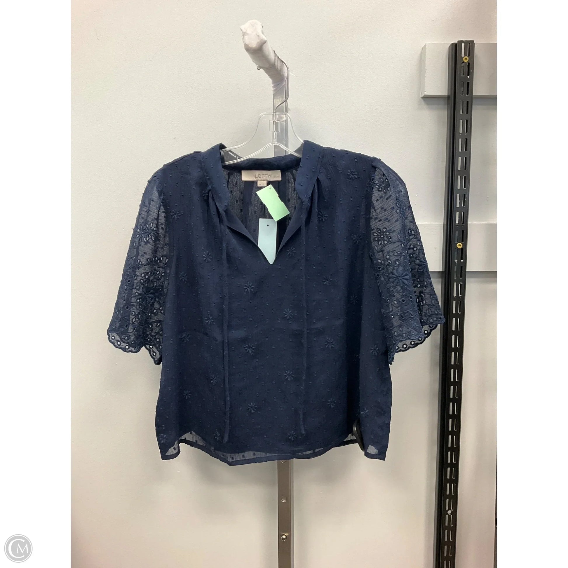 Top Short Sleeve By Loft In Navy, Size: Sp
