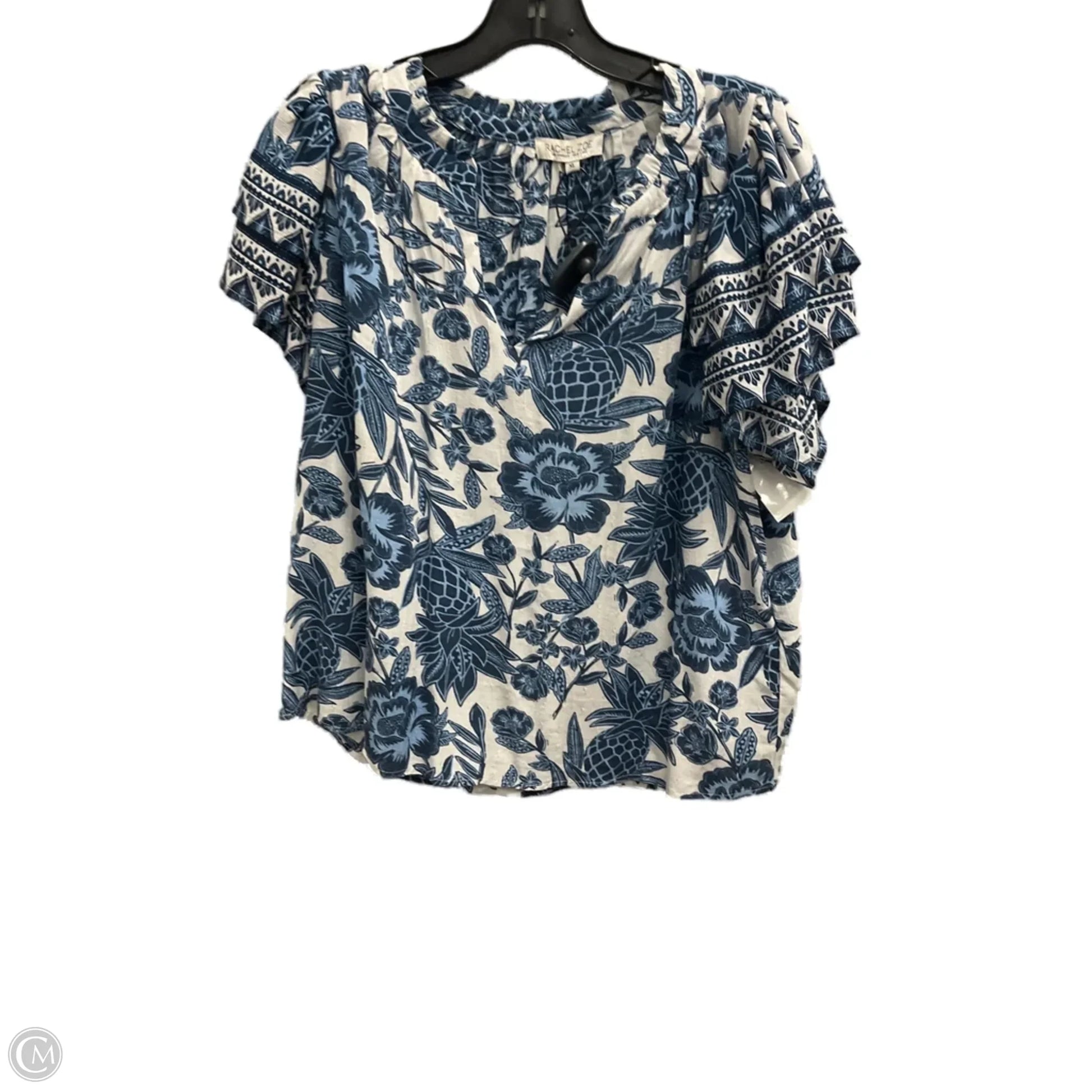 Top Short Sleeve By Rachel Zoe In Blue & White, Size: Xl