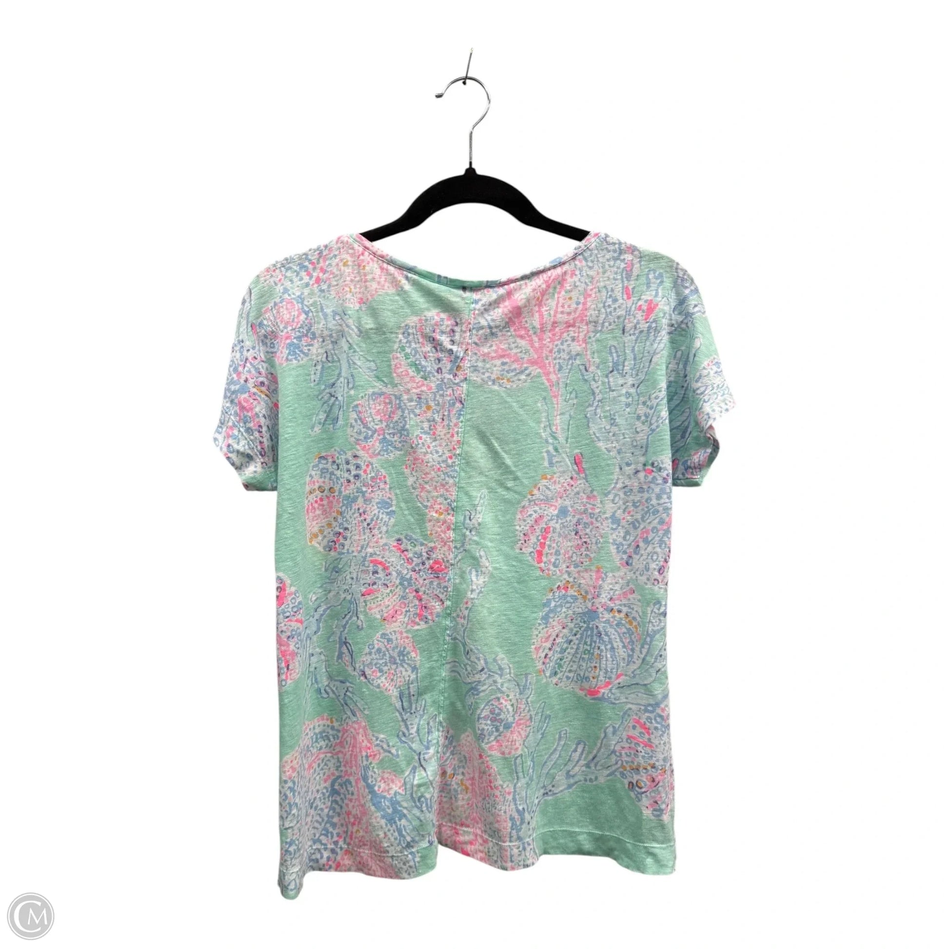 Top Short Sleeve Designer By Lilly Pulitzer In Green & Pink, Size: S