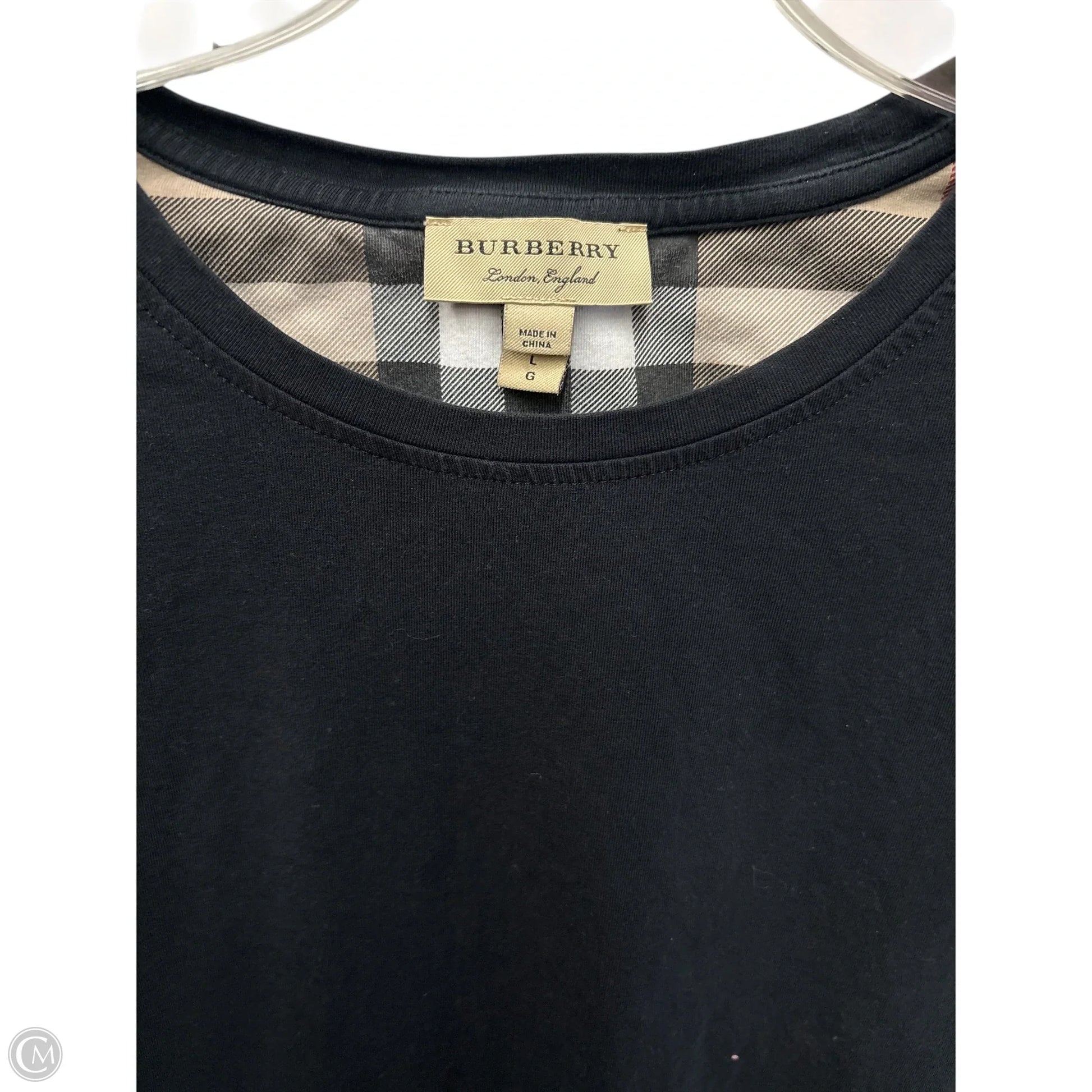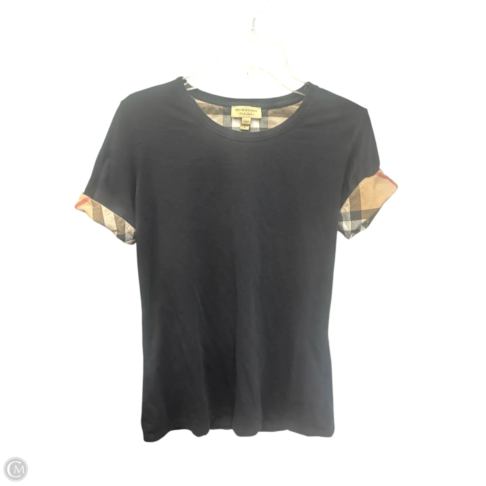 Top Short Sleeve Luxury Designer By Burberry In Black, Size: L