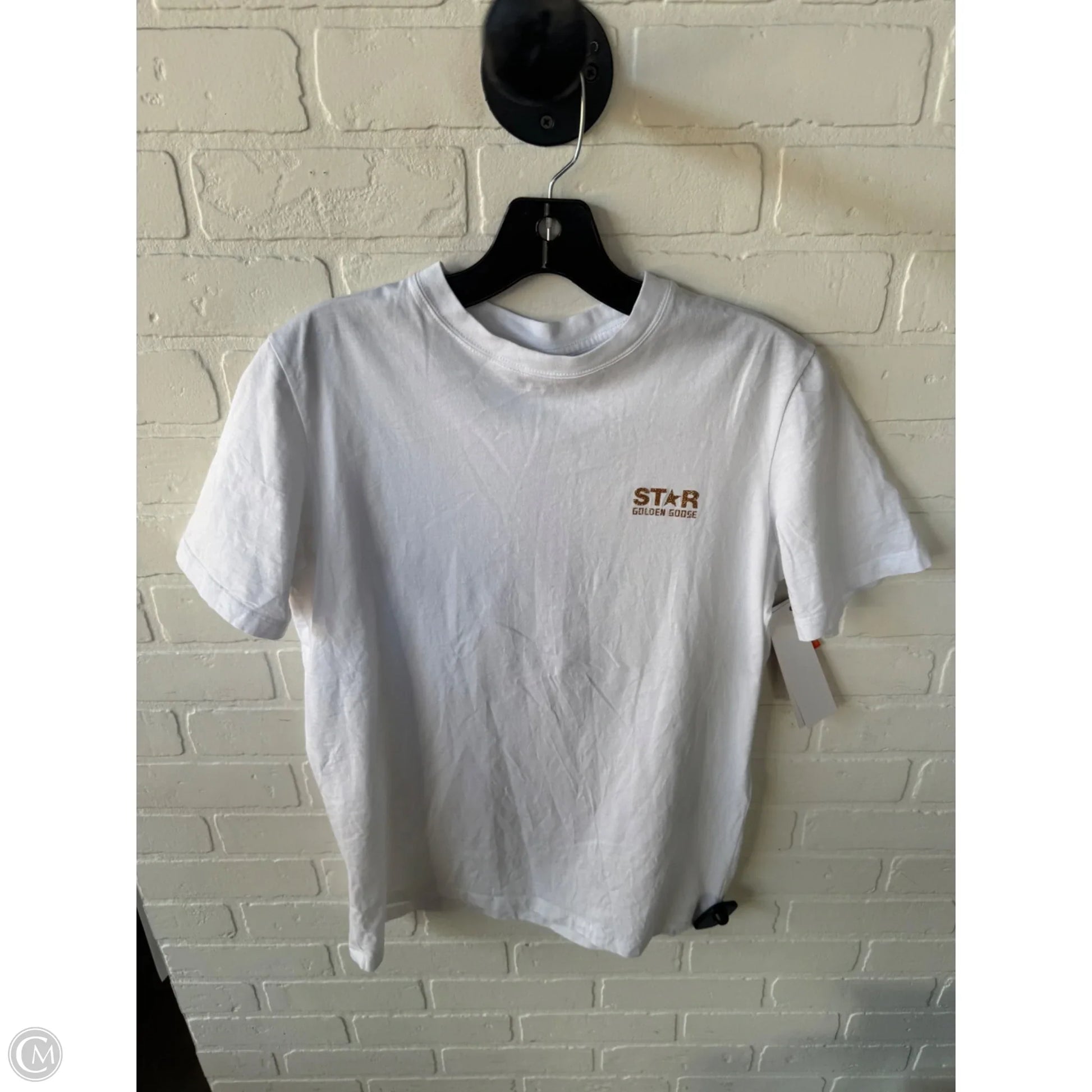 Top Short Sleeve Luxury Designer By Golden Goose In Gold & White, Size: Xs