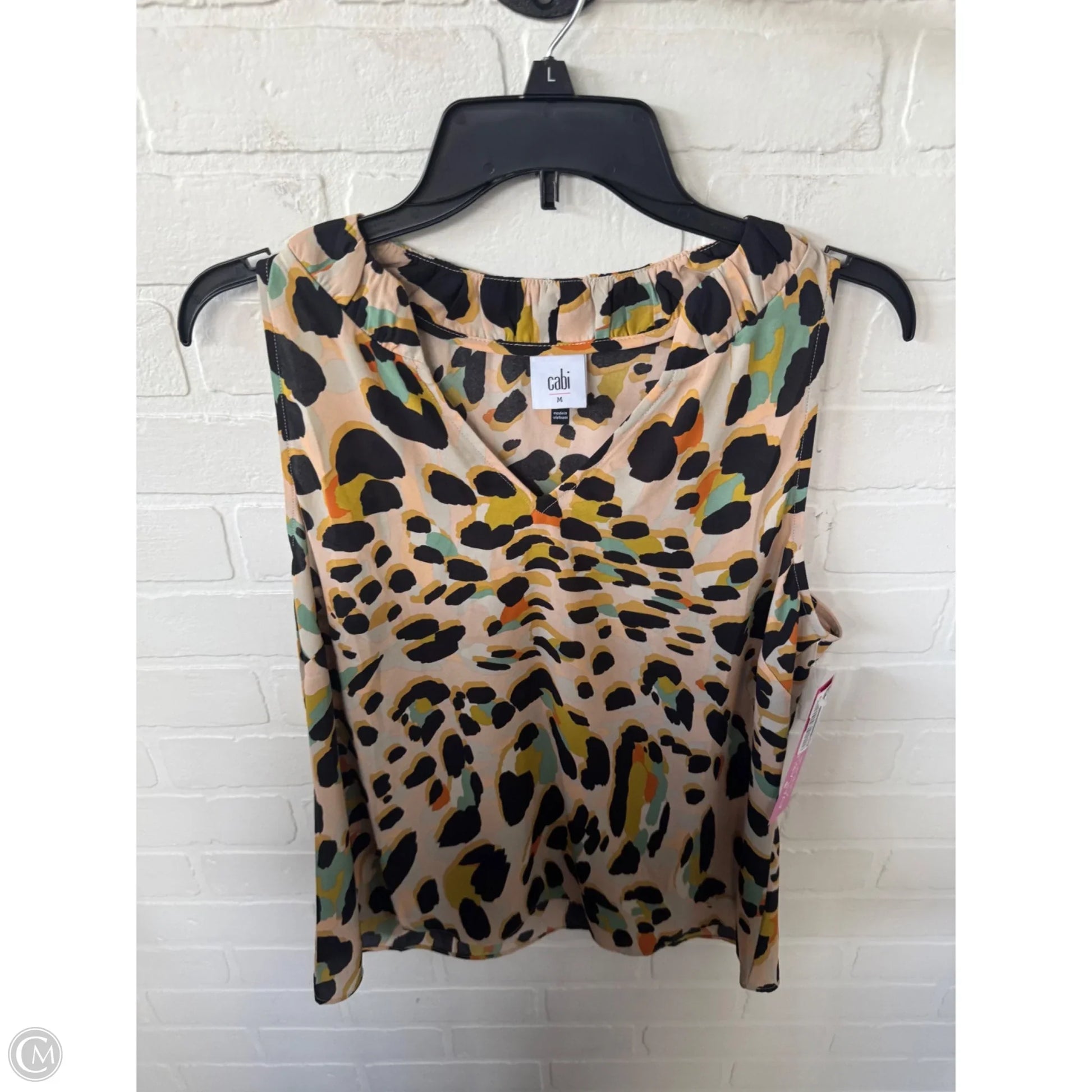 Top Sleeveless By Cabi In Black & Yellow, Size: M