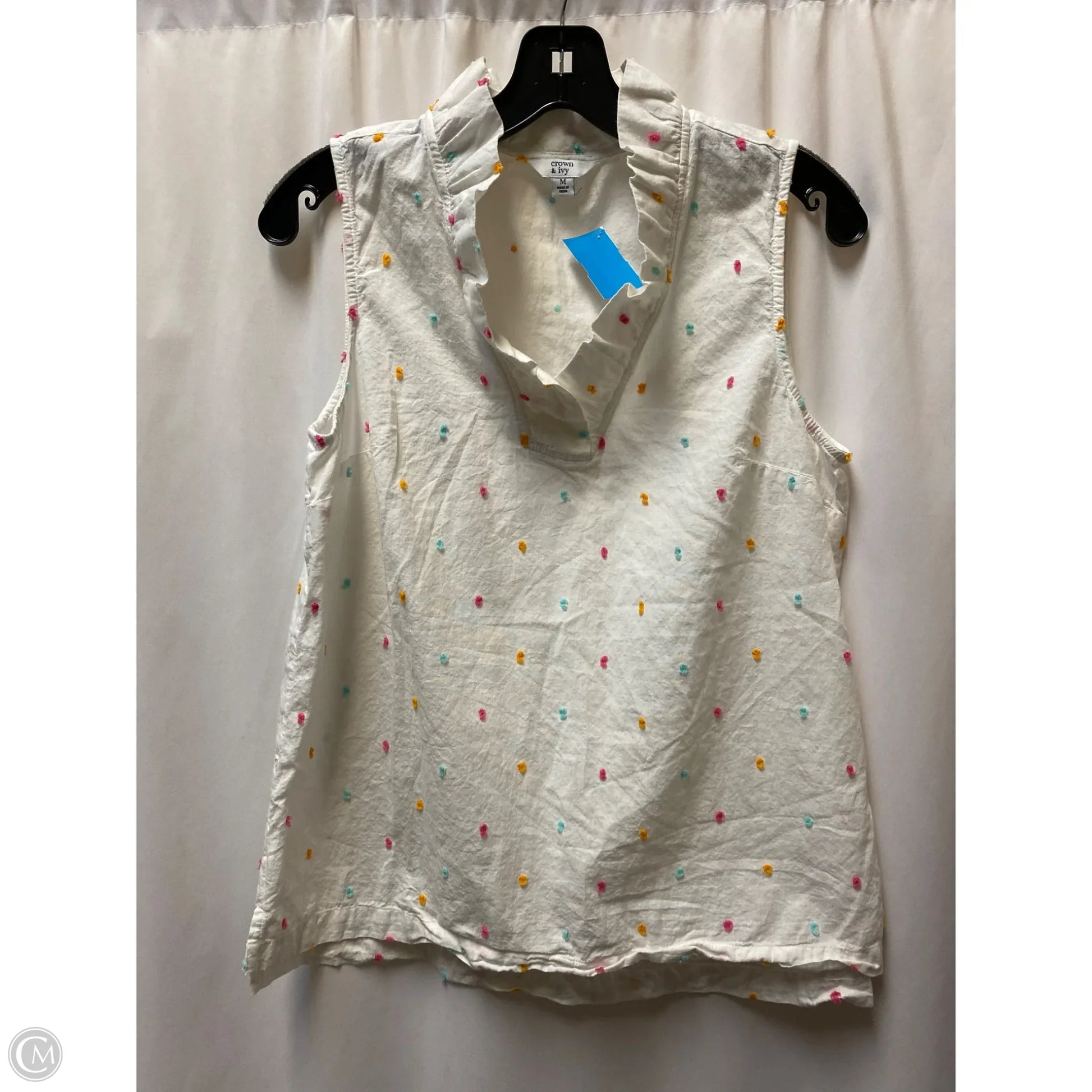 Elegant white sleeveless top by Crown and Ivy, size M. Perfect for summer.