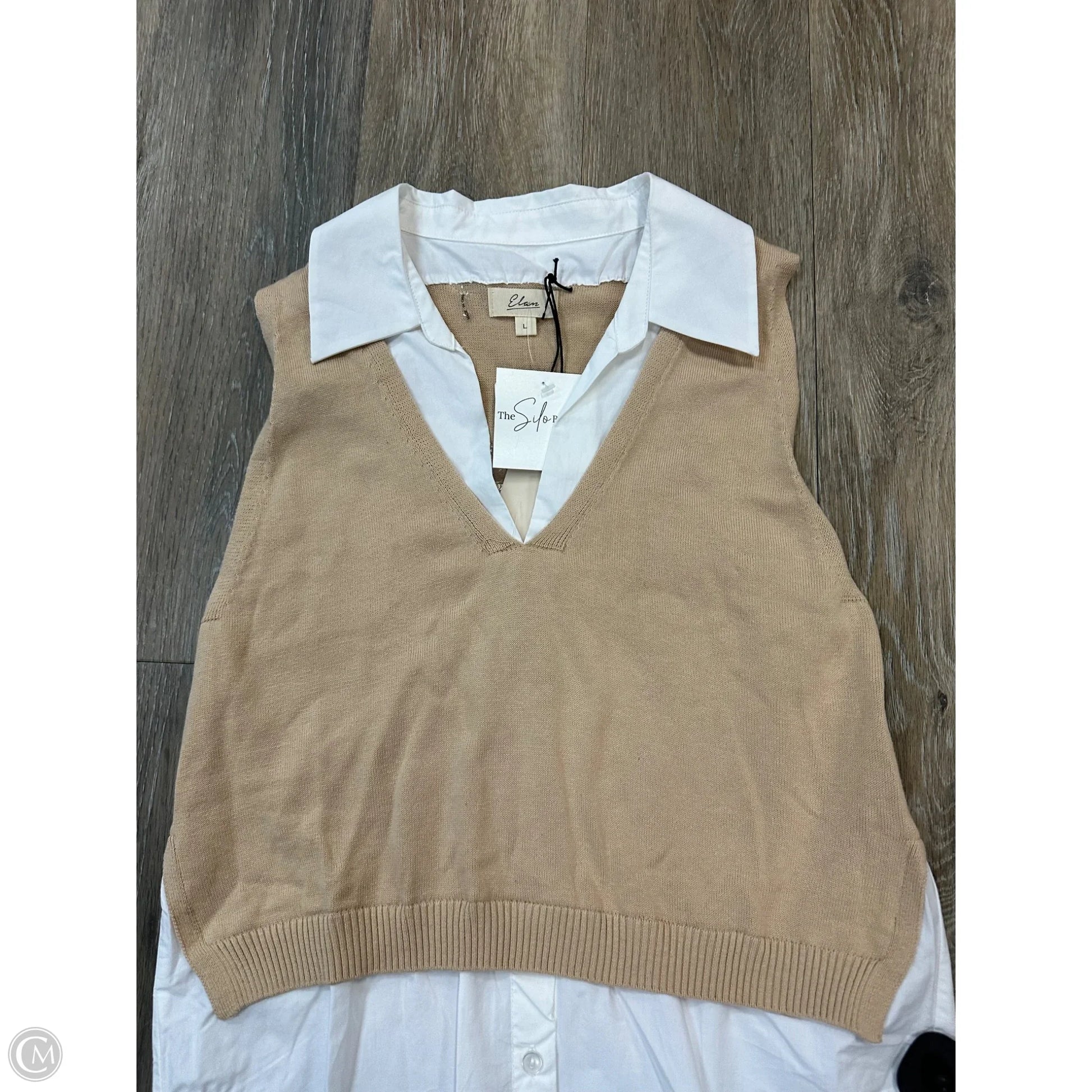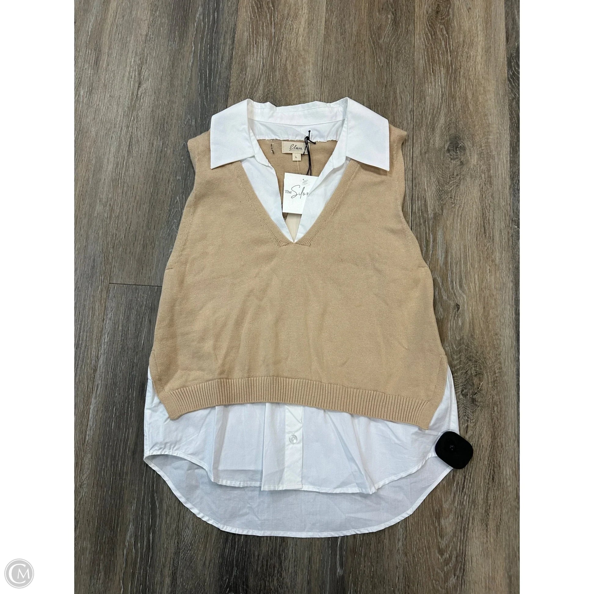 Top Sleeveless By Elan In Tan & White, Size: L