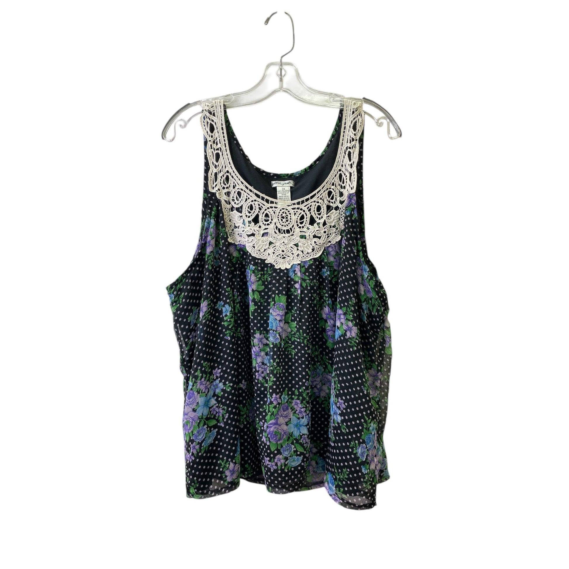 Top Sleeveless By Ultra Pink In Black & Green, Size:3X