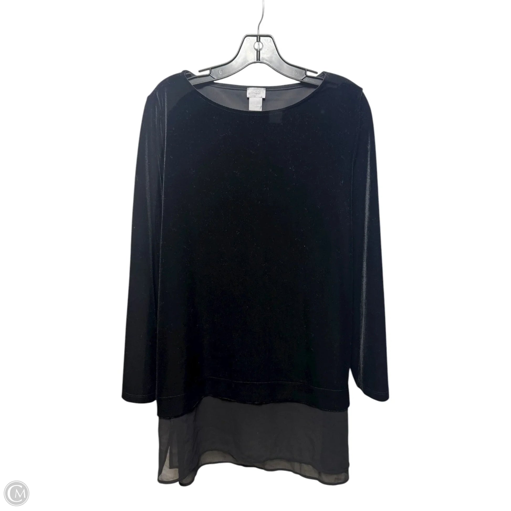 Velvet Tunic Top Long Sleeve By Chicos In Black, Size: 12